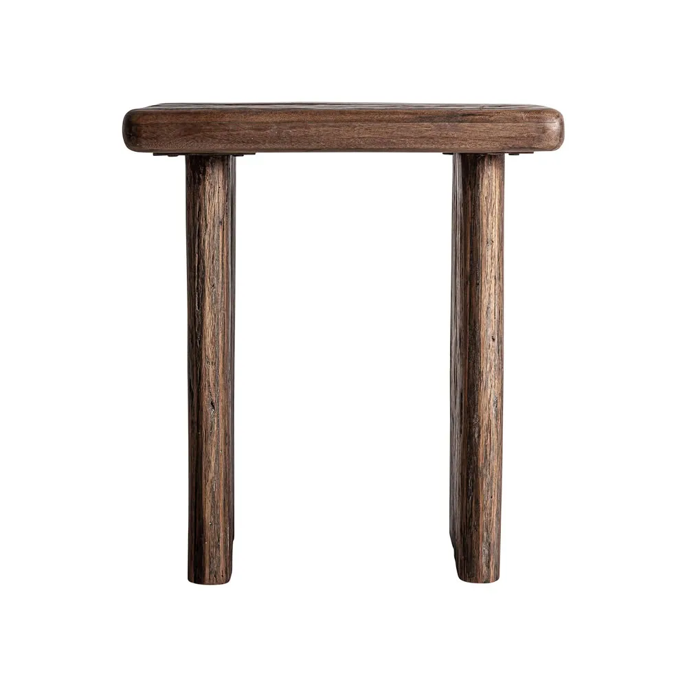 Mesa auxiliar toigne de estilo contemporáneo fabricado en madera tropical en color marrón con acabado envejecido. Producto desmontable.