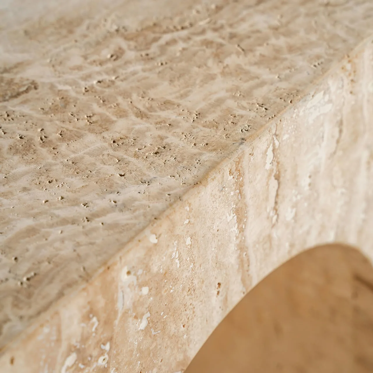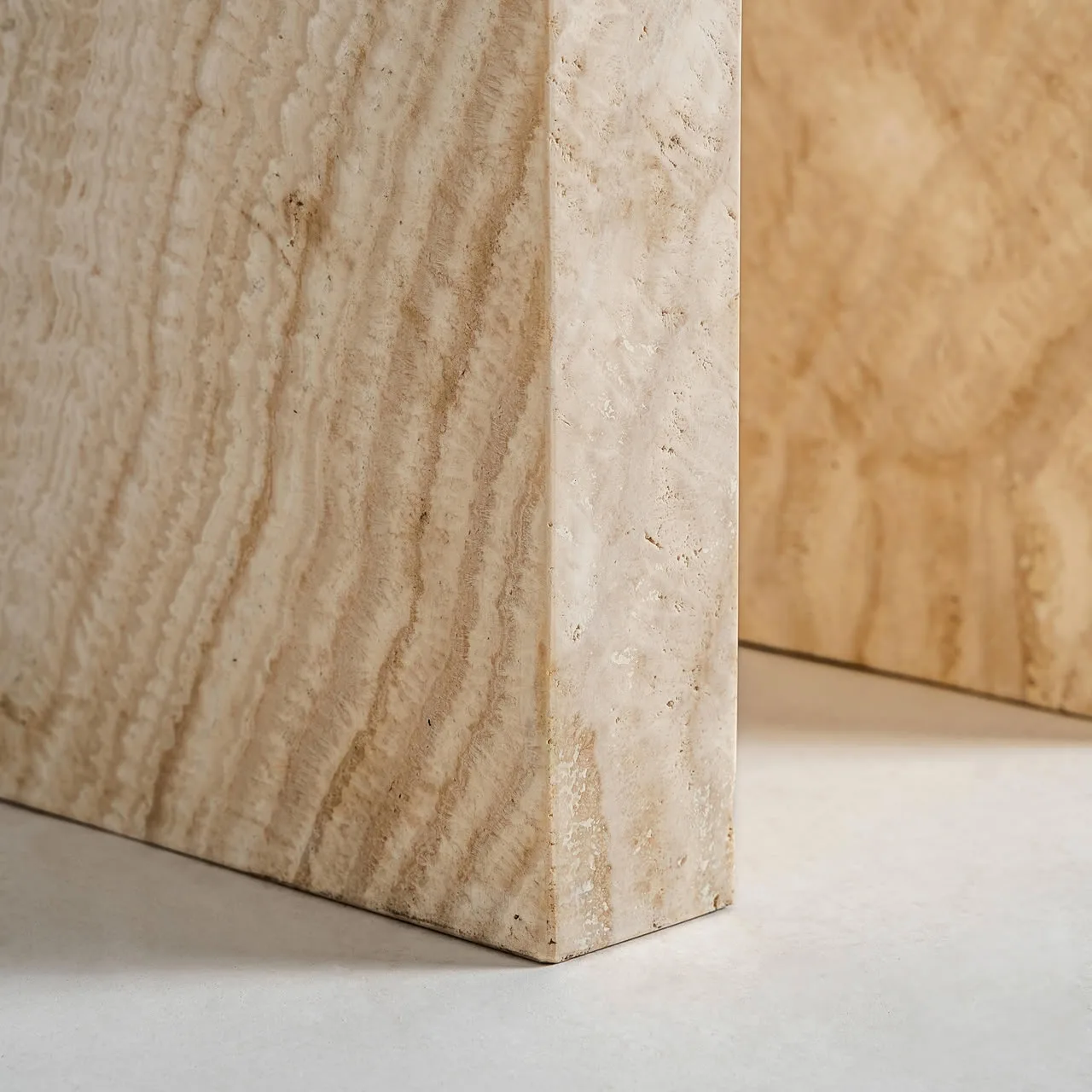 Mesa auxiliar Thiennes de estilo art deco fabricado en travertino en color marrón claro.