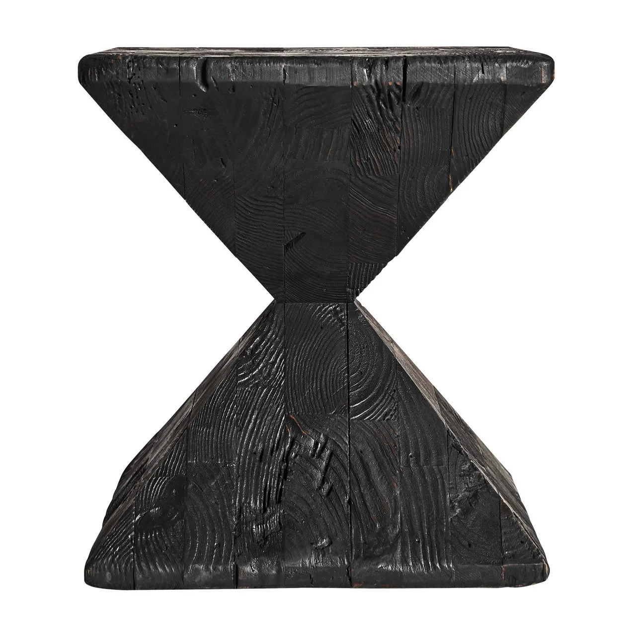 Mesa auxiliar vievy de estilo art deco, fabricado en madera de pino reciclado en color negro.