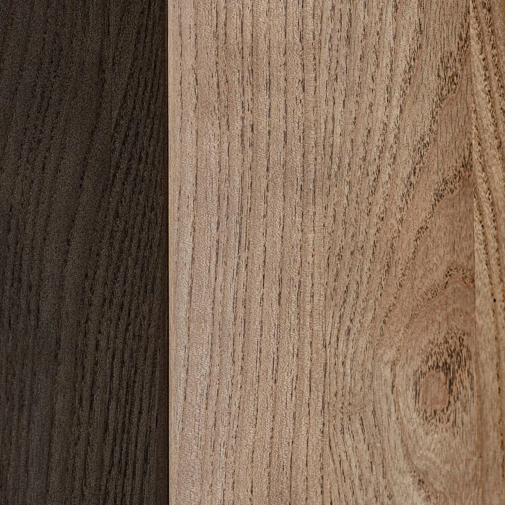 Mesa bar karpacz de estilo contemporáneo fabricado en madera roble en color marrón combinado con travertino en color beige.