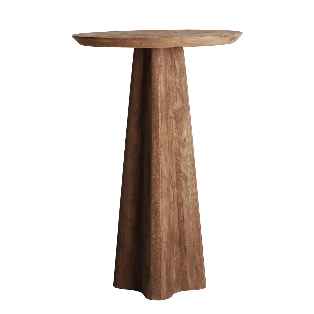 Mesa bar de madera de mango en tono marrón Keale de Kodu, una pieza de carácter escultórico que combina elegancia y presencia. Su diseño vertical y proporciones —70 x 70 x 103 cm— la convierten en un punto focal ideal para barras, zonas lounge o espacios que buscan un estilo contemporáneo con identidad.