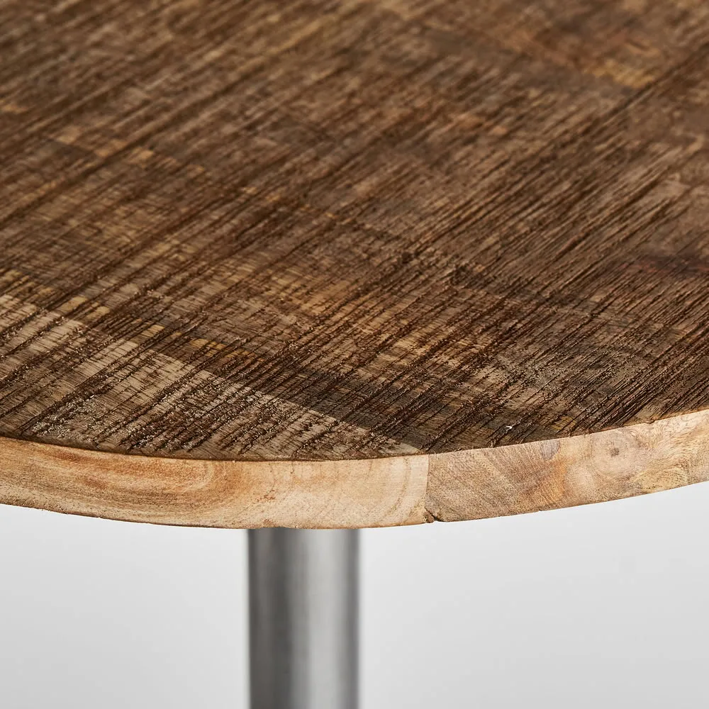 Diseño vintage que respira autenticidad. Su estructura en hierro con pintura negra y sobre en madera de mango la convierten en una pieza con alma industrial y esencia natural. Producto desmontable.
