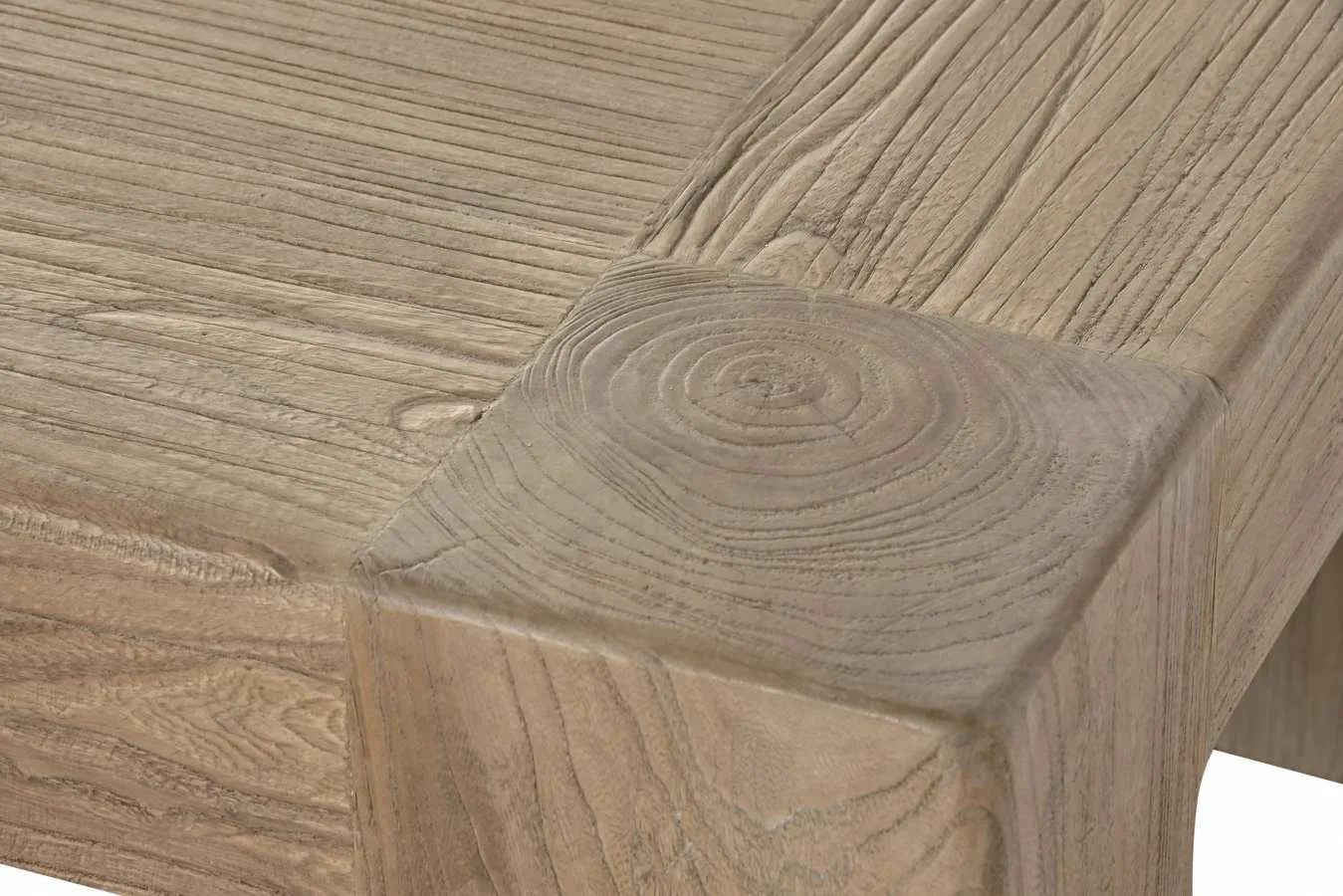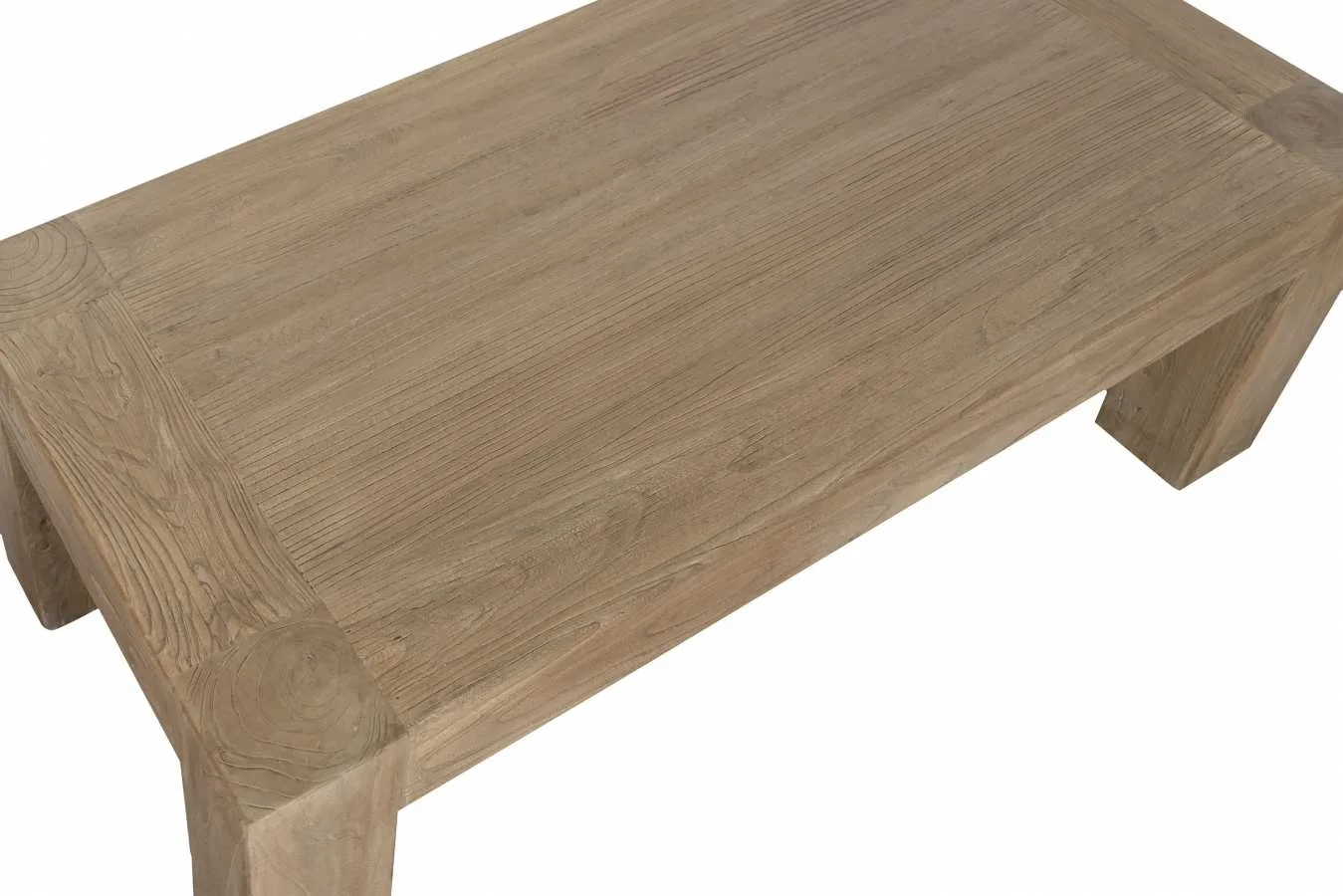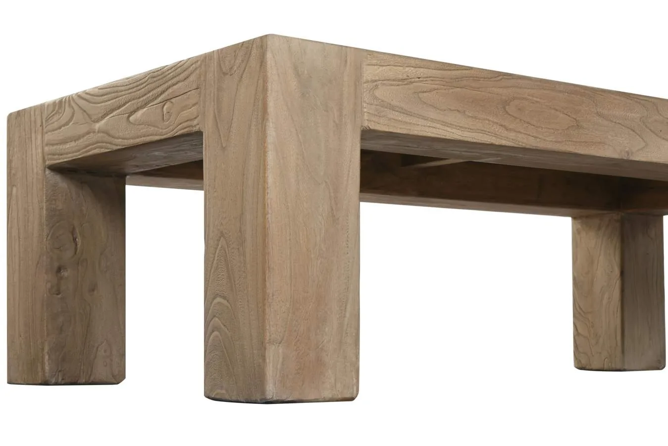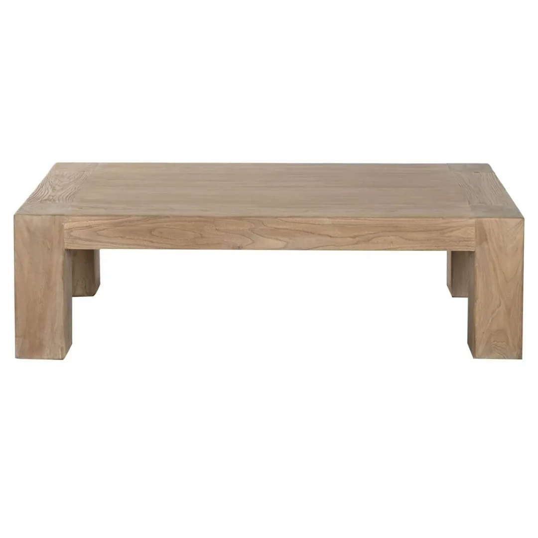 Mesa de centro de olmo macizo de diseño minimalista y líneas puras. El veteado natural y la solidez del olmo macizo la convierten en una pieza de gran valor decorativo para salones contemporáneos que buscan una mesa de centro de madera maciza con carácter natural y acabado de calidad. Mide 140 cm de largo, 70 cm de ancho y 42 cm de alto.
