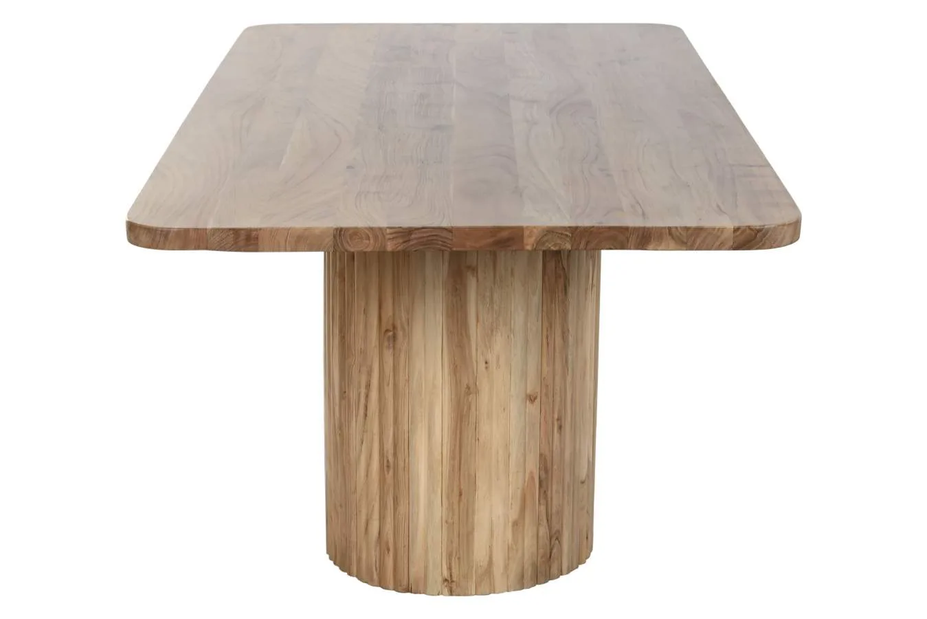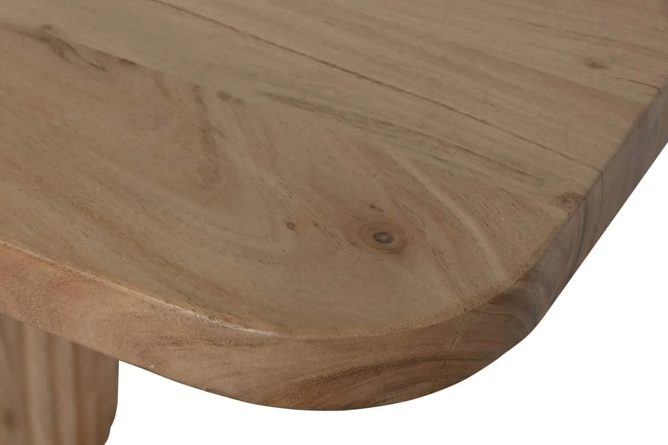 Mesa de comedor rectangular de madera de acacia de estilo escandinavo y acabado natural. El veteado único y la solidez de la acacia la convierten en una pieza cálida y atemporal, perfecta para comedores que buscan una mesa de comedor de madera maciza natural con diseño nórdico y acabado de calidad. Mide 200 cm de largo, 100 cm de ancho y 76 cm de alto.