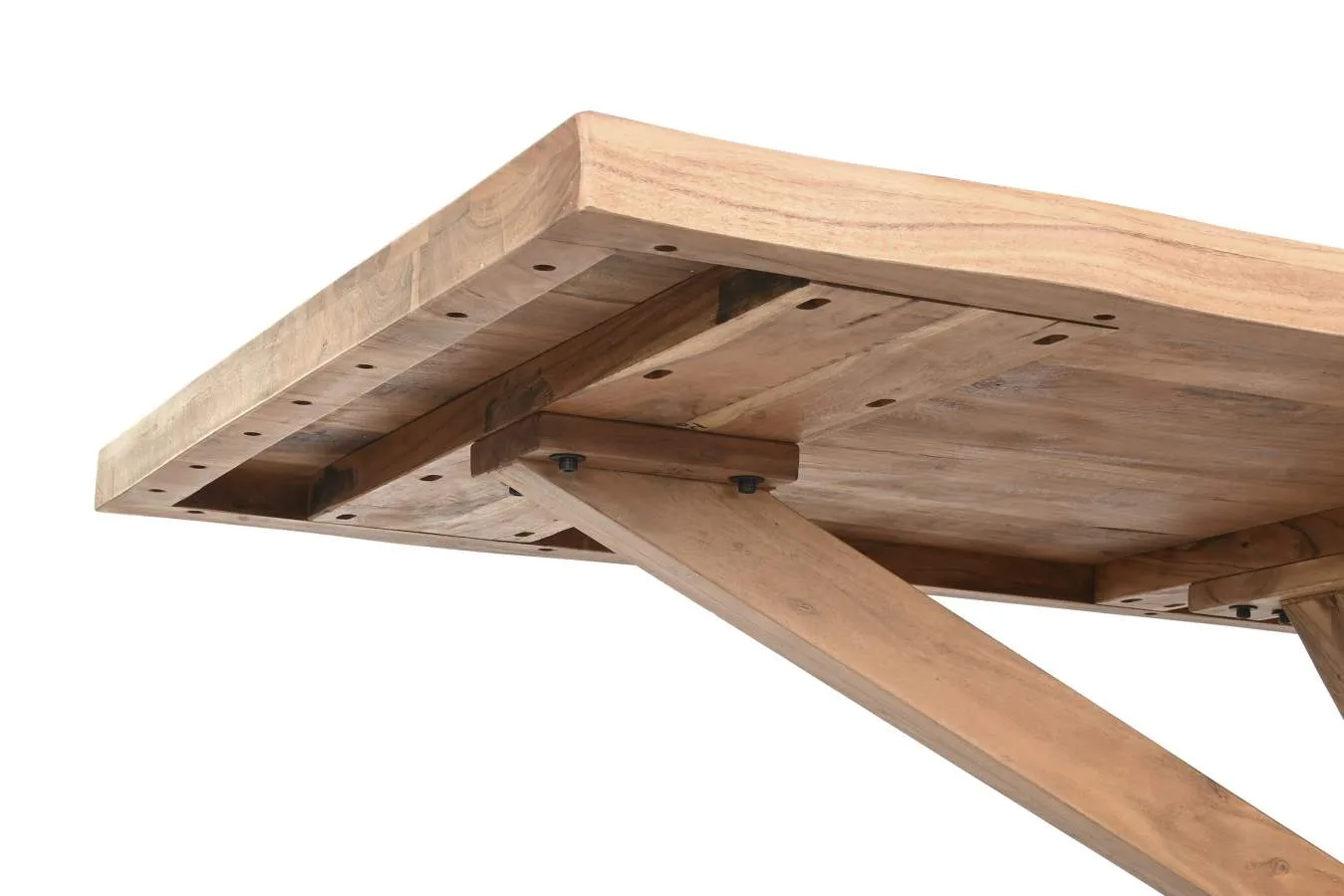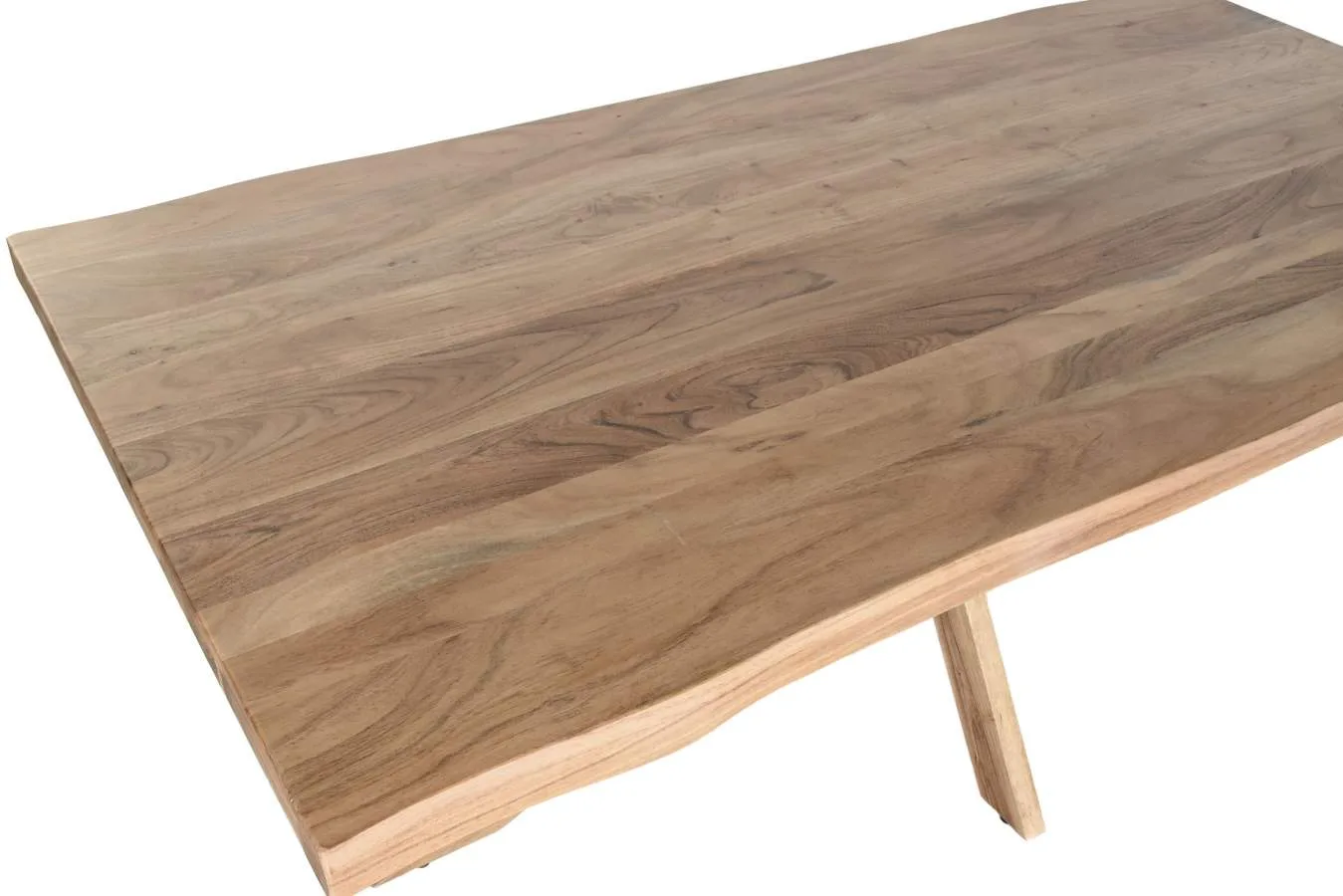 Mesa de comedor rectangular de madera de acacia en color natural, robusta y duradera. El veteado único y la solidez de la acacia la convierten en una pieza de gran valor decorativo y larga vida útil, perfecta para comedores de inspiración alpina que buscan una mesa de comedor de madera maciza natural con acabado cálido y de calidad. Mide 200 cm de largo, 100 cm de ancho y 78 cm de alto.