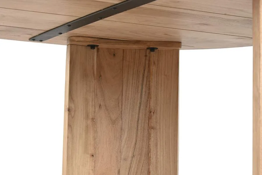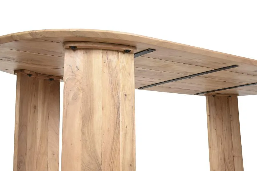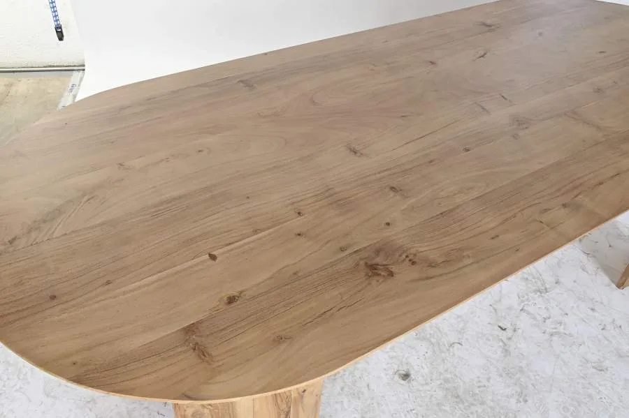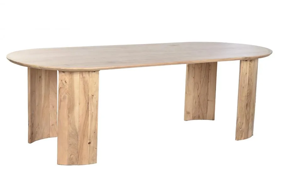 Mesa de comedor de madera de acacia de diseño moderno y líneas limpias. El veteado natural y la solidez de la acacia la convierten en una pieza de gran valor decorativo y larga durabilidad, perfecta para grandes comedores que buscan una mesa de comedor de madera maciza natural con acabado contemporáneo y de calidad. Mide 240 cm de largo, 100 cm de ancho y 75 cm de alto.