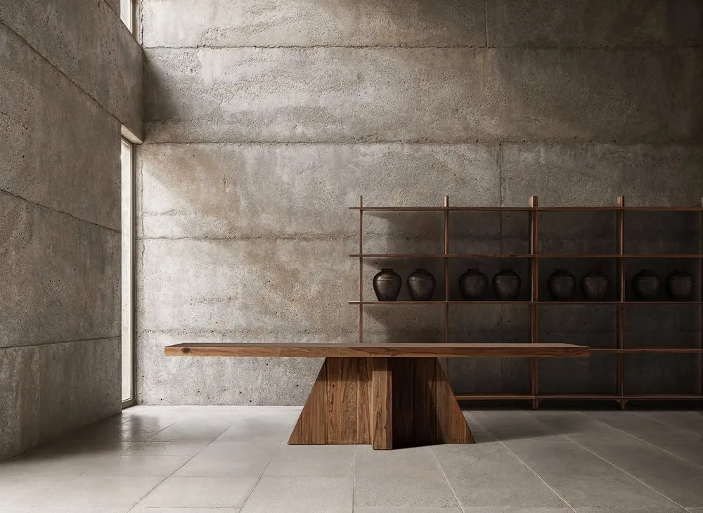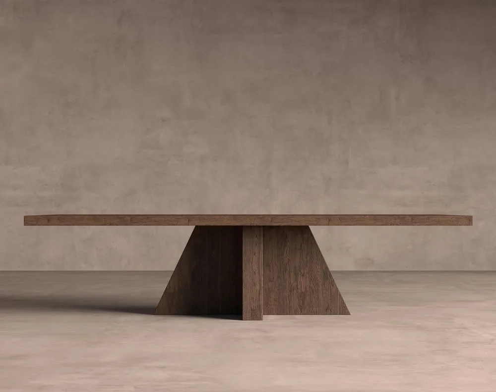 Mesa comedor Brutalist de estilo contemporáneo fabricado en madera de sal en color marrón con acabado teñido.
