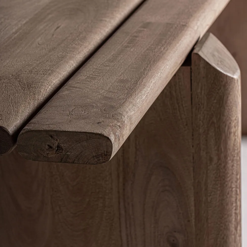 Mesa comedor jacquard de estilo contemporáneo fabricado en madera de mango en color marrón claro. Producto desmontable.