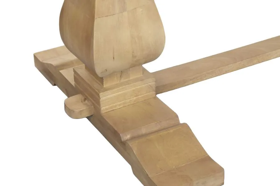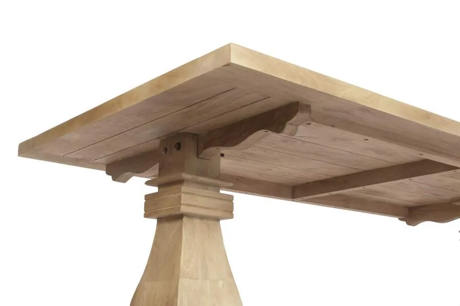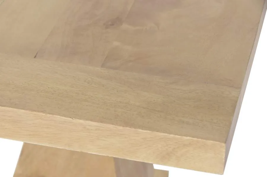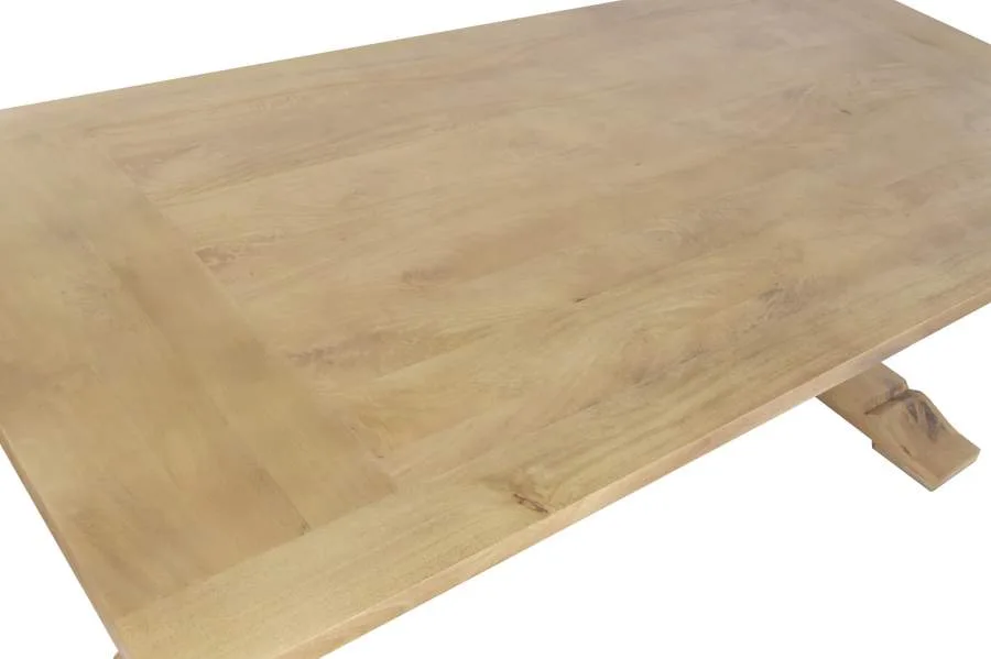 Mesa de comedor rectangular fabricada en madera maciza de mango en tono natural, con un acabado cálido y elegante de inspiración toscana. Su sólida construcción y sus amplias dimensiones la convierten en una pieza central para comedores con personalidad. Mide 215 cm de largo, 100 cm de ancho y 76 cm de alto.