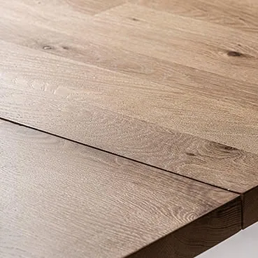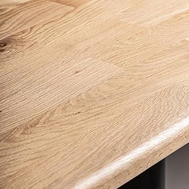 Mesa comedor nara de estilo contemporáneo, fabricado en madera roble en color marrón claro, combinado con madera de mango en color negro. Producto desmontable.