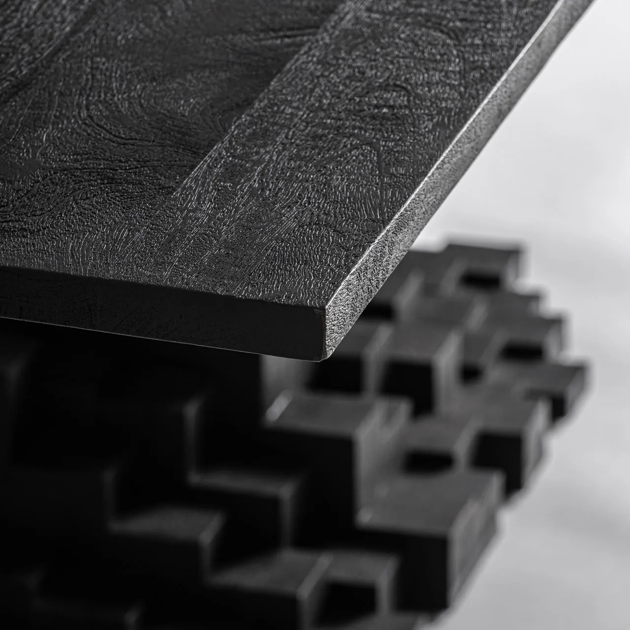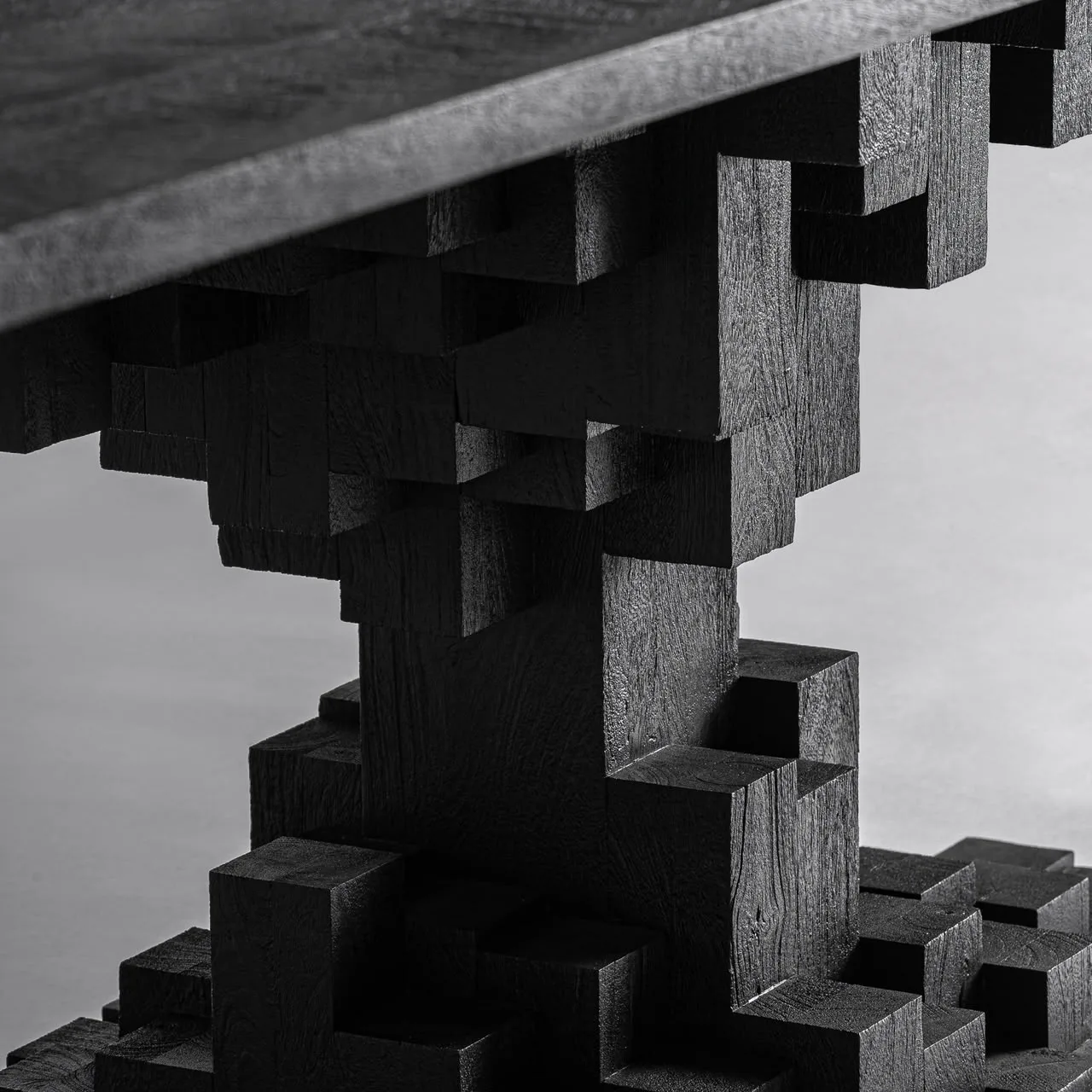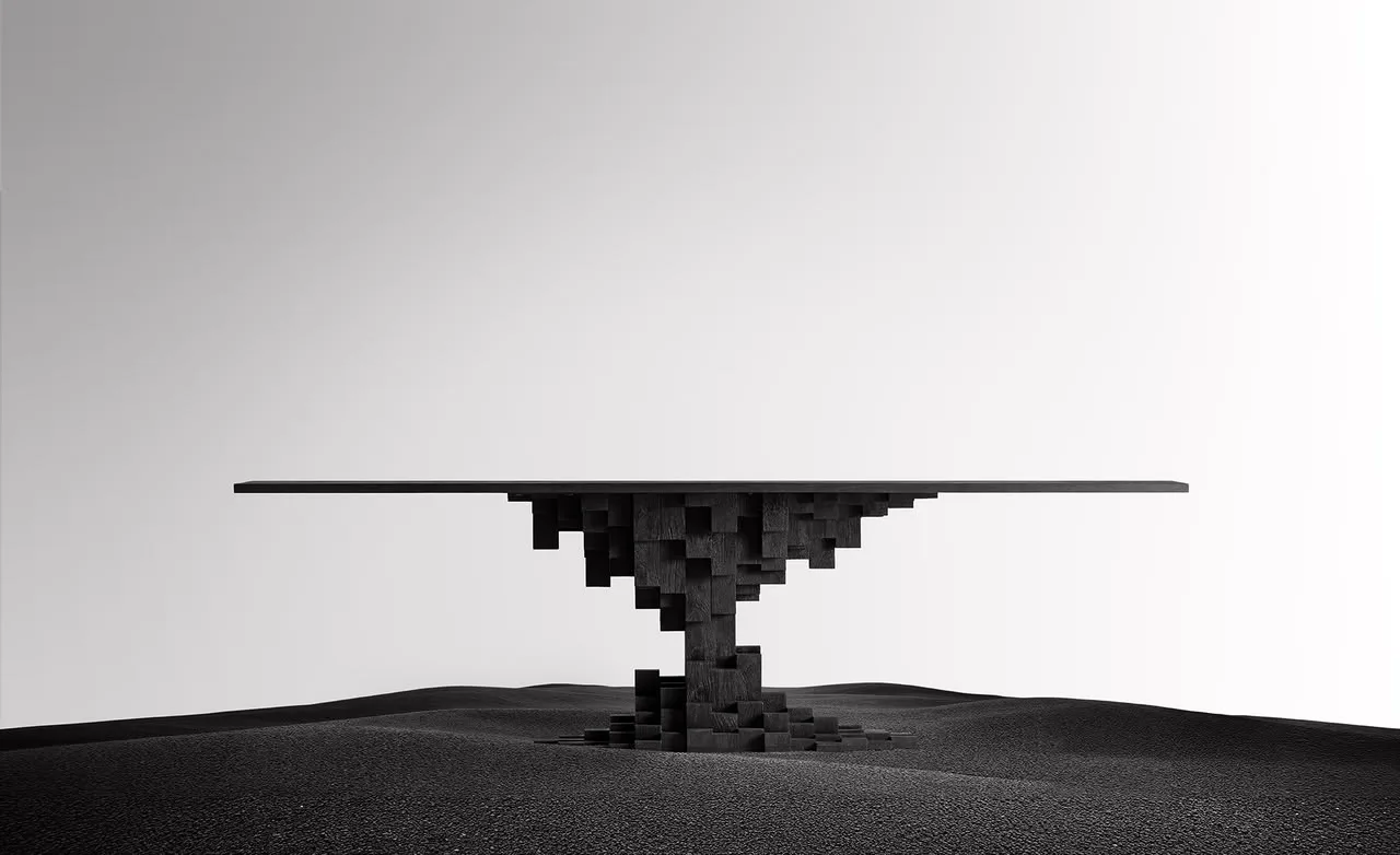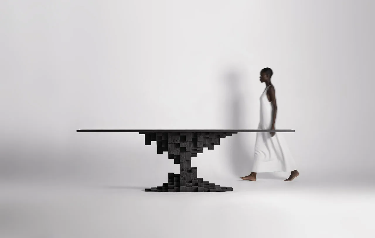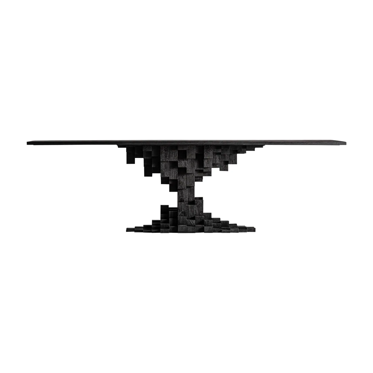 Mesa comedor Pètria de estilo contemporáneo, fabricado en madera de mango en color negro con acabado arenado. Producto desmontable.