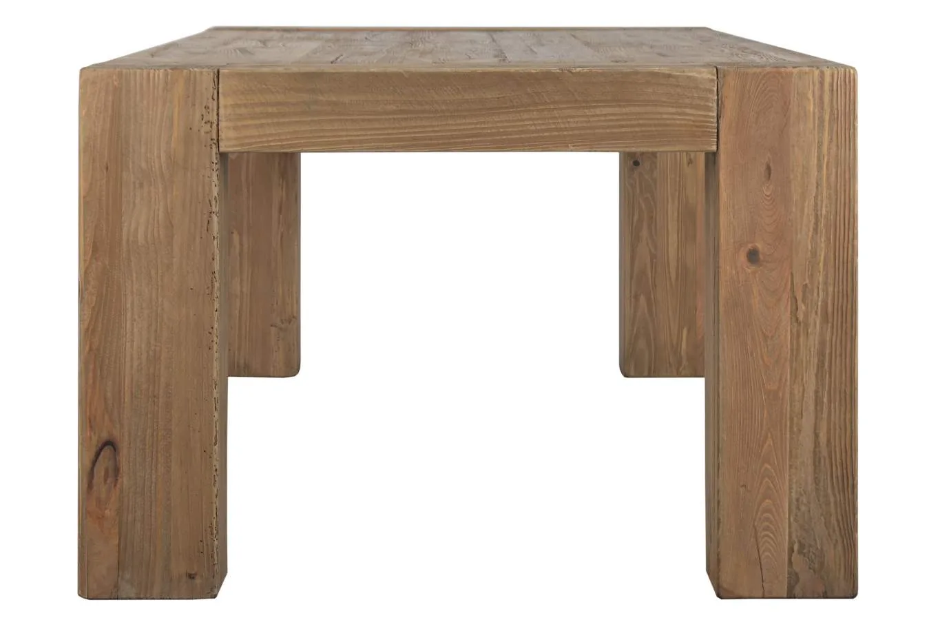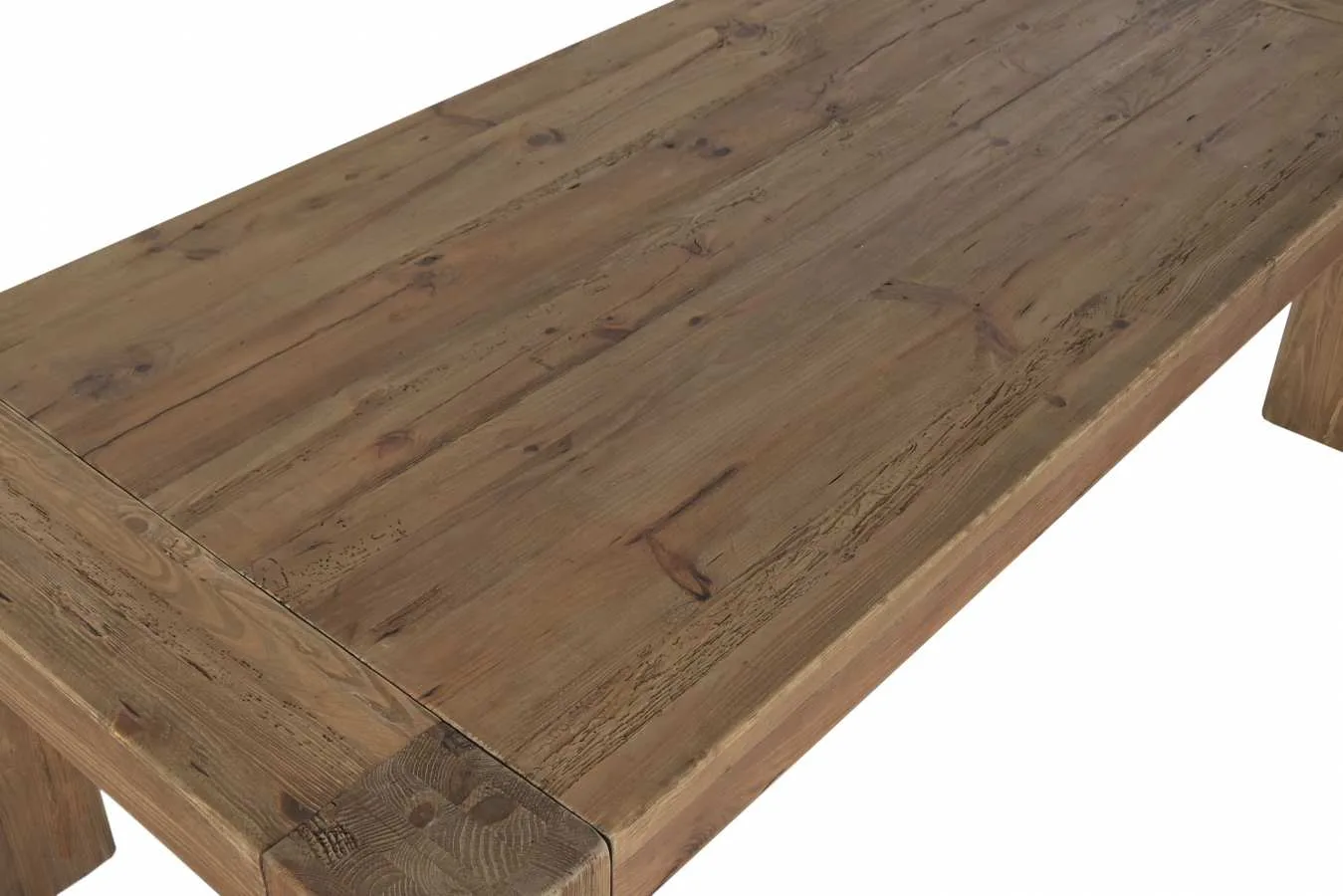 Mesa de comedor rectangular de gran formato fabricada en pino y madera reciclada con acabado desgastado en tono natural, de inspiración alpina y carácter rústico. Su generosa superficie la convierte en una pieza perfecta para grandes comedores y reuniones familiares. Mide 240 cm de largo, 110 cm de ancho y 78 cm de alto.