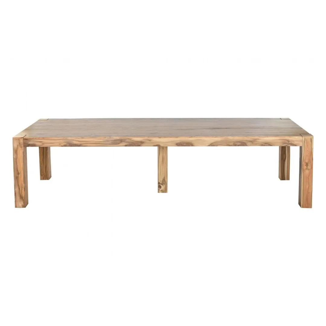 Mesa de comedor de teca de 3 metros rectangular, de madera de teca maciza en color natural, de gran formato y excepcional presencia. La teca, reconocida mundialmente por su durabilidad, resistencia y veteado natural único, la convierte en una pieza de inversión y larga vida útil, perfecta para grandes comedores y celebraciones familiares que buscan una mesa de comedor de teca maciza de calidad premium. Mide 300 cm de largo, 100 cm de ancho y 78 cm de alto.