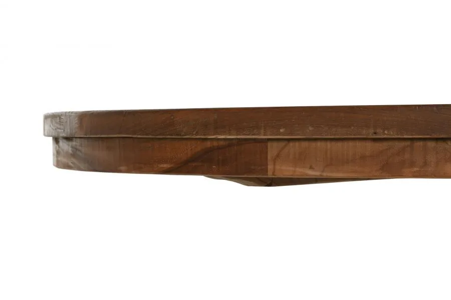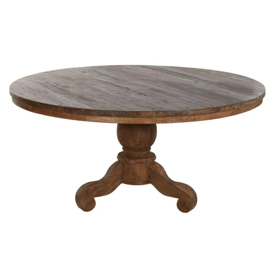 Mesa de comedor redonda de teca reciclada en color natural con pie torneado, una combinación que fusiona la sostenibilidad de la madera reciclada con un detalle artesanal clásico. Su gran diámetro la hace perfecta para reunir a toda la familia, y el veteado natural único de la teca reciclada garantiza que ninguna otra mesa sea igual. Mide 160 cm de diámetro y 78 cm de alto.