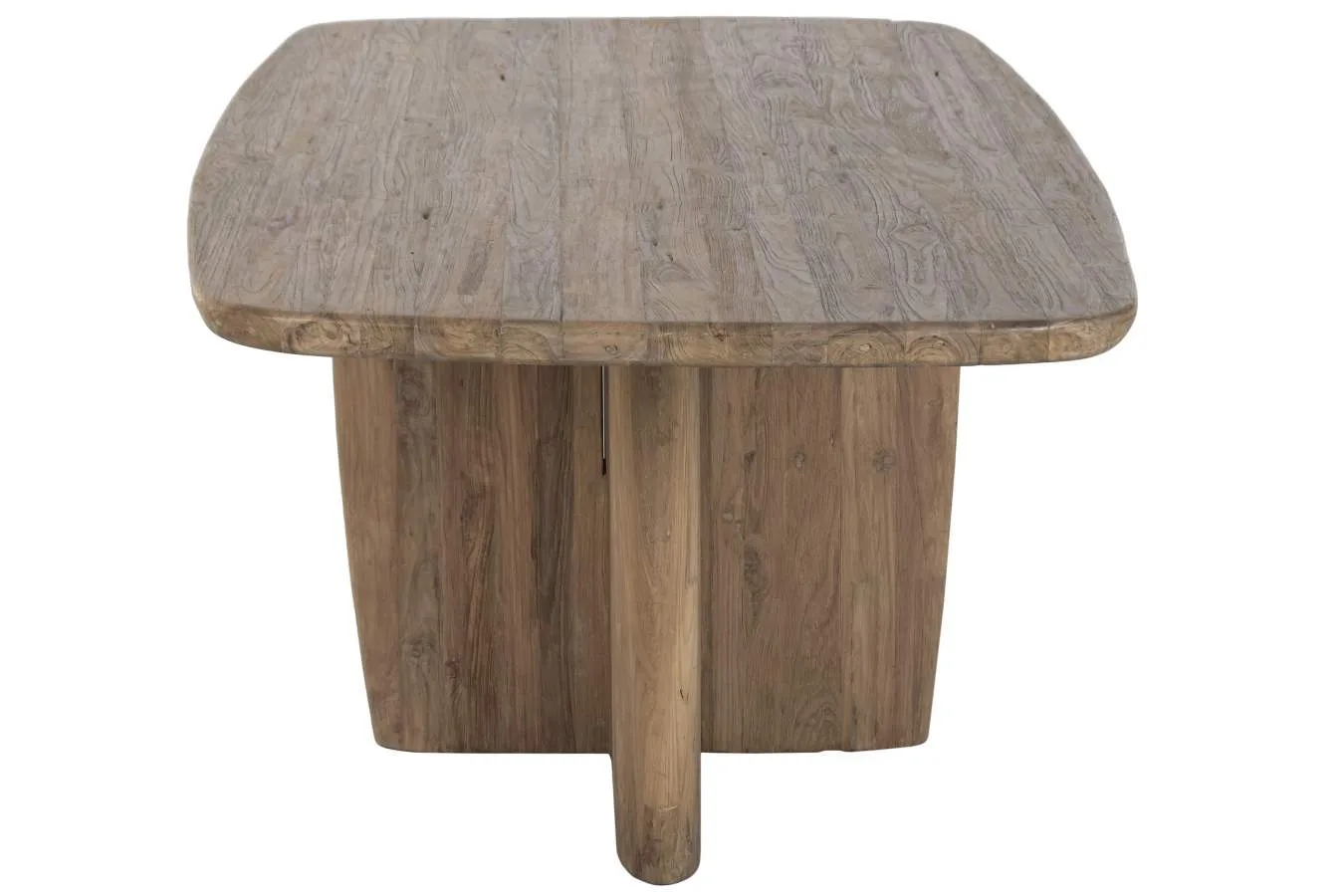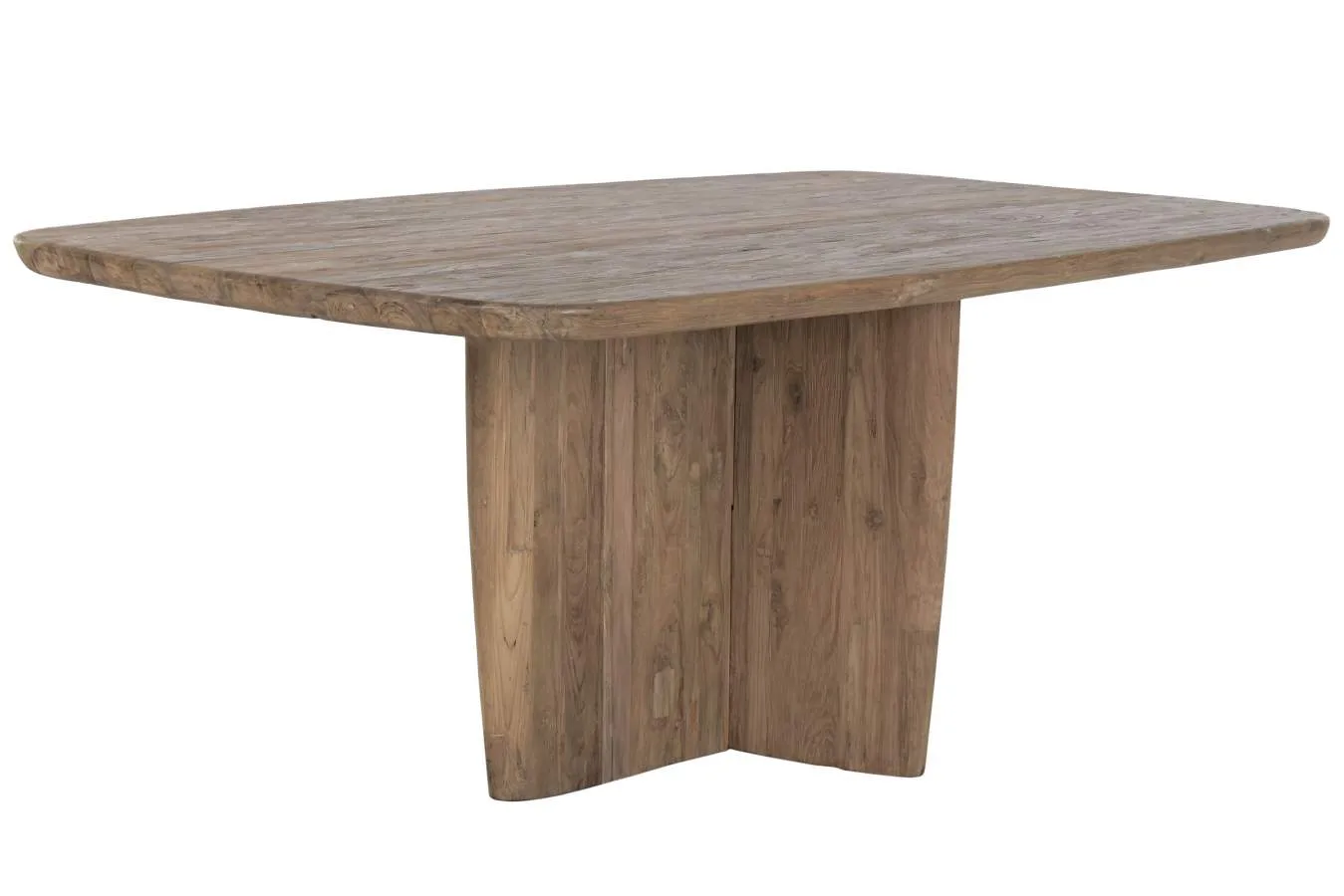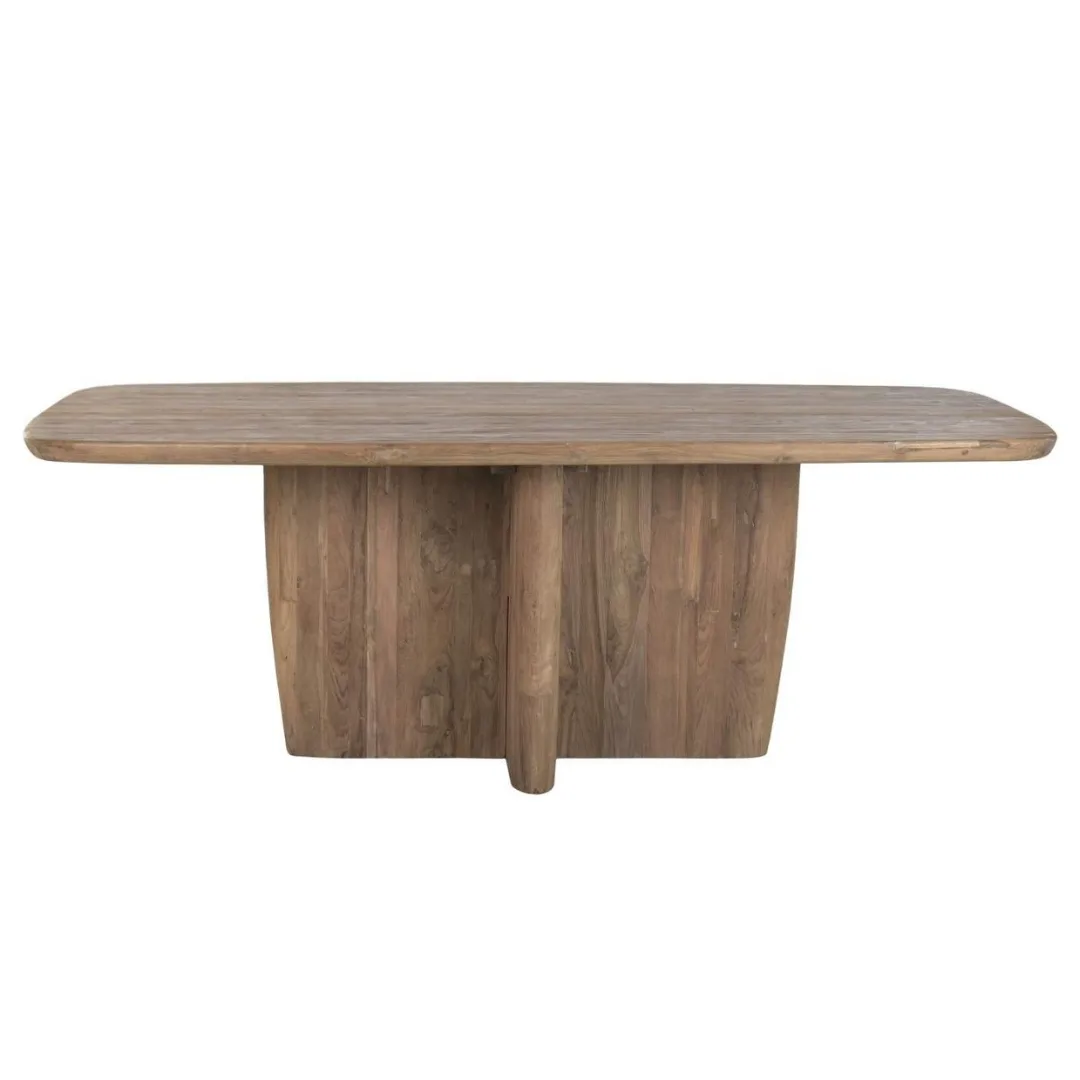 Mesa de comedor rectangular fabricada en teca reciclada de tono natural, con un carácter cálido, sostenible y de estética moderna. Sus amplias dimensiones la hacen perfecta para grandes comedores y reuniones familiares. Mide 220 cm de largo, 110 cm de ancho y 78 cm de alto.