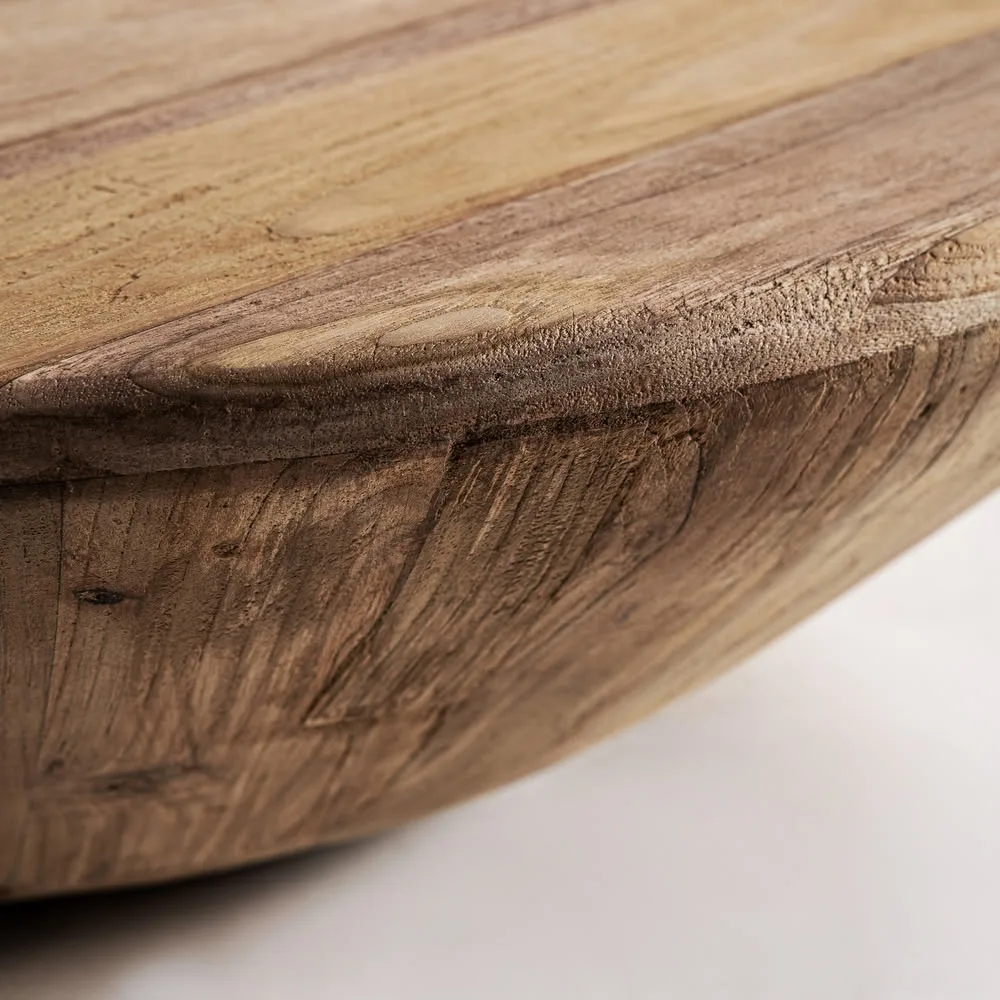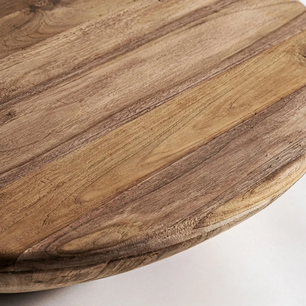 Mesa de centro Erloy de estilo rústico fabricado en madera de teka reciclada en color marrón claro con acabado envejecido.