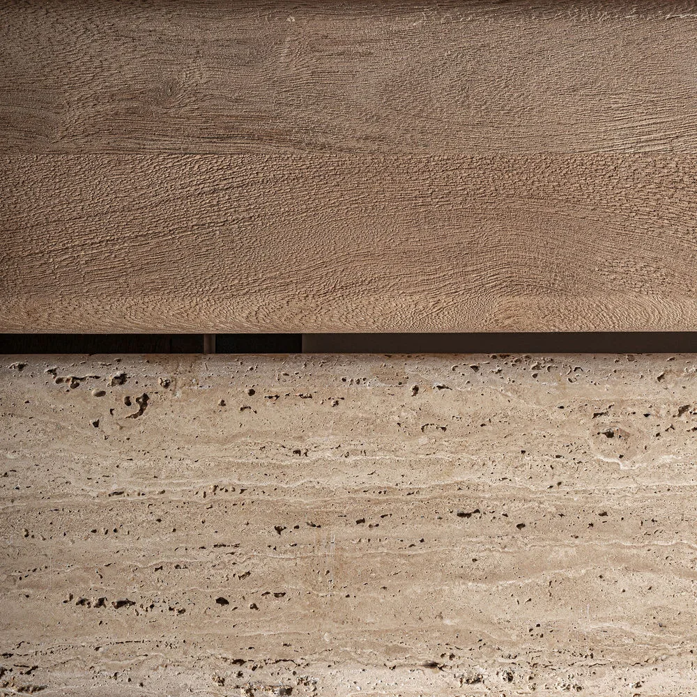 La mesa de centro Jacquard, diseñada por Estudi(H)ac, combina mármol y madera de mango en una composición equilibrada y escultórica. Su volumen sereno y su presencia natural la convierten en un punto focal discreto pero lleno de carácter.