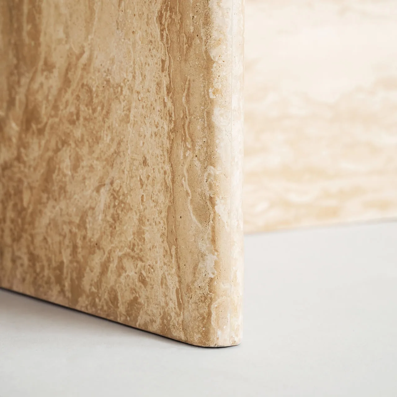 Mesa de centro j 2 Thiennes de estilo art deco, fabricado en travertino en color marrón claro.