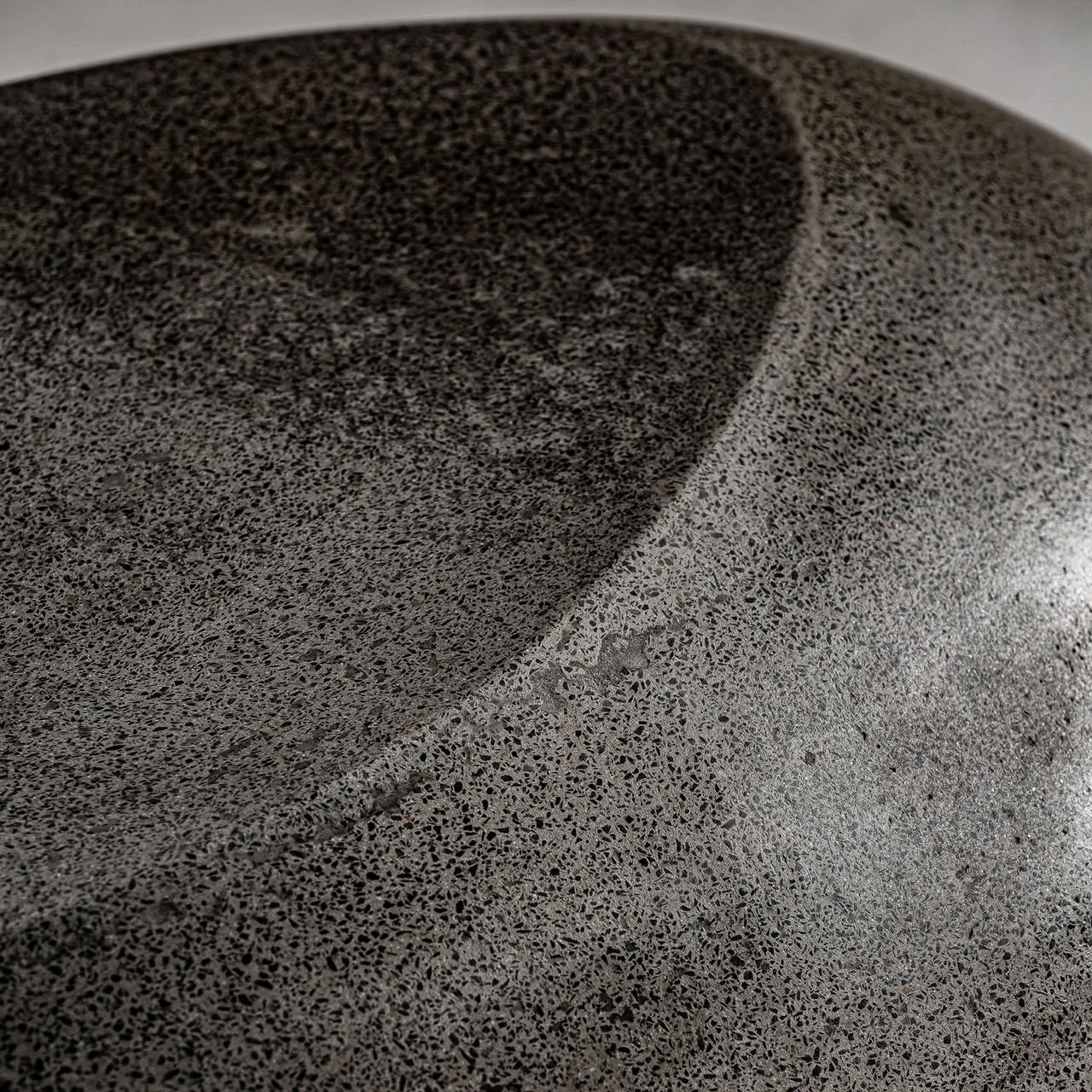 Mesa de centro vieste de estilo contemporáneo, fabricado en piedra en color gris.
