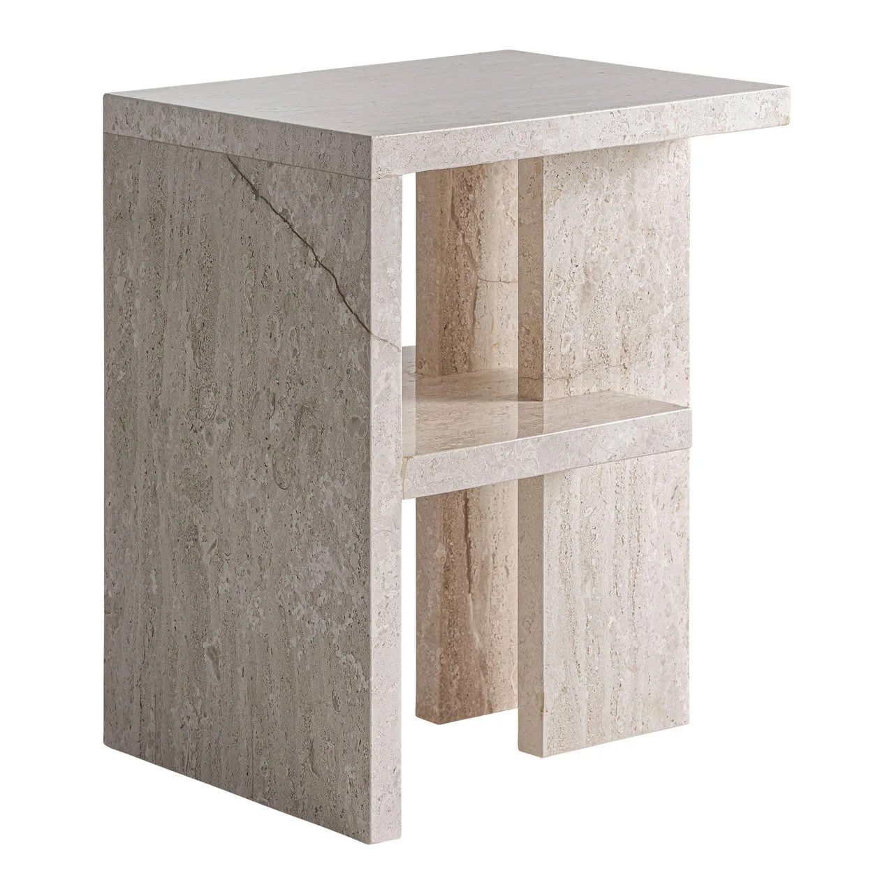 Mesita de noche Korba de estilo clásico fabricado en mármol en color beige con acabado veteado.