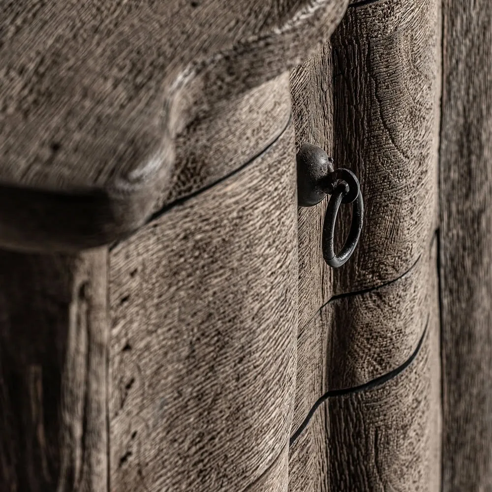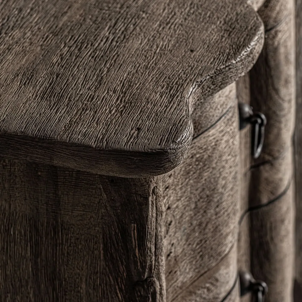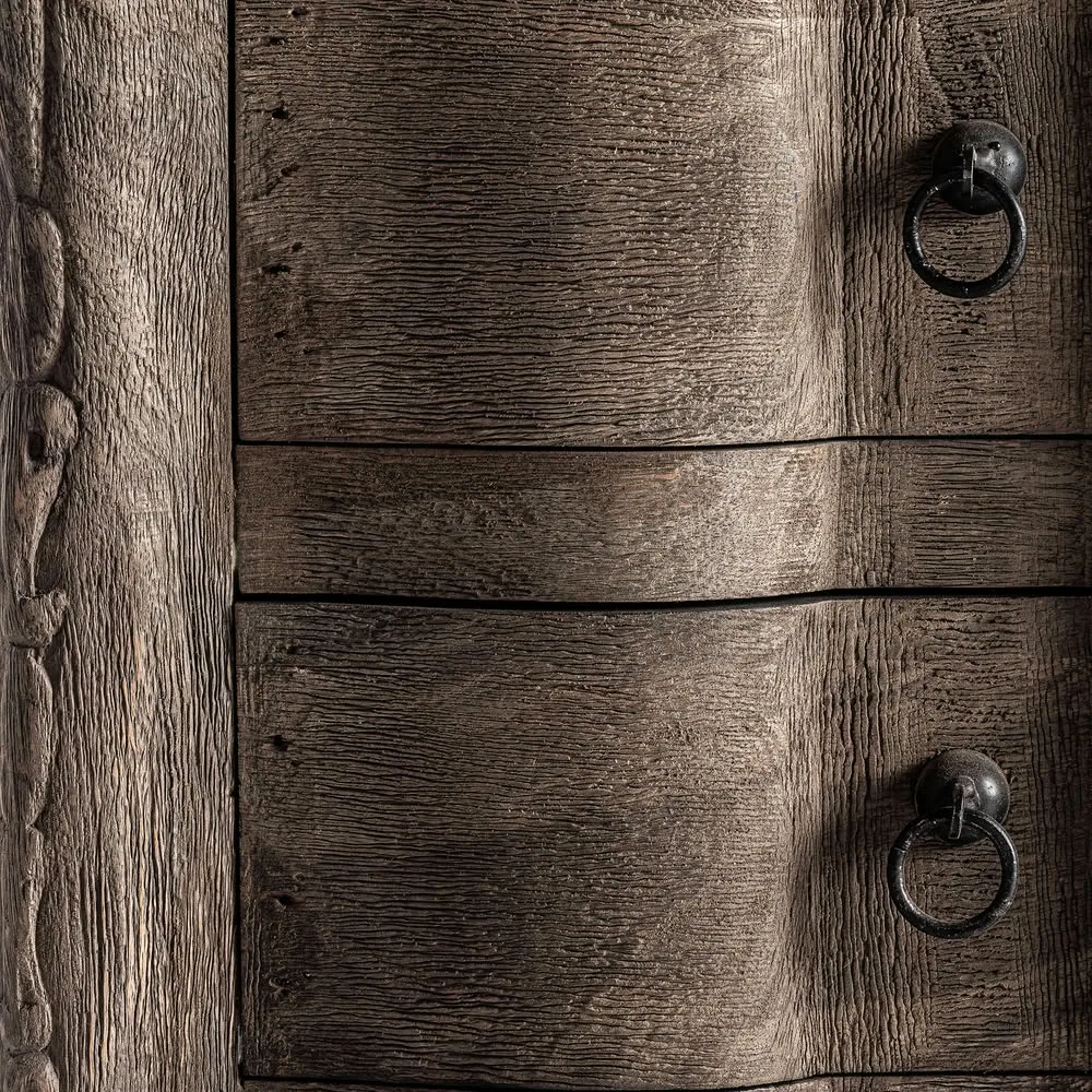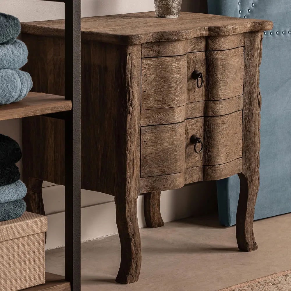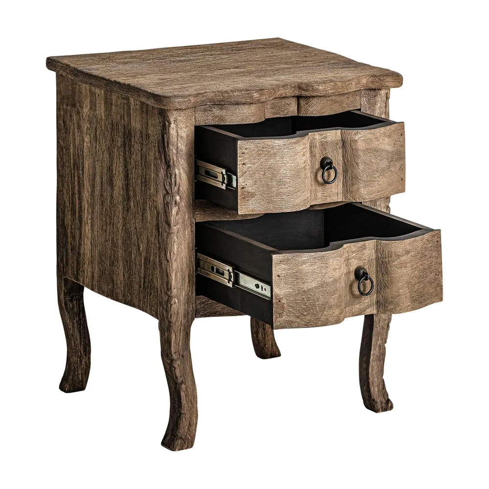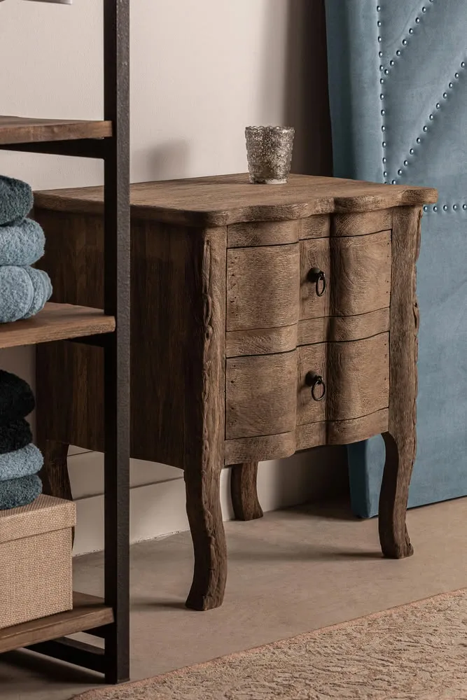 Mesita de noche munguia de estilo colonial fabricado en madera de mango en color marrón con acabado envejecido combinado con hierro.
