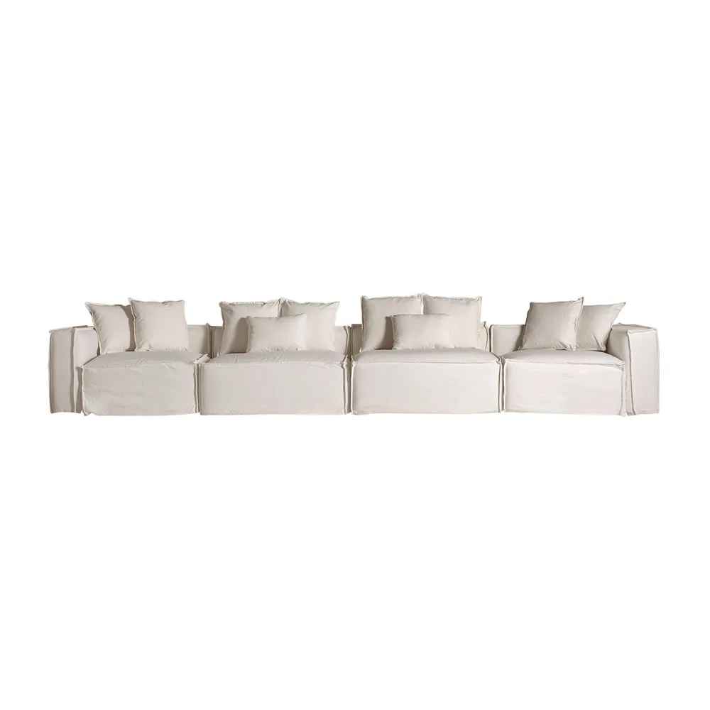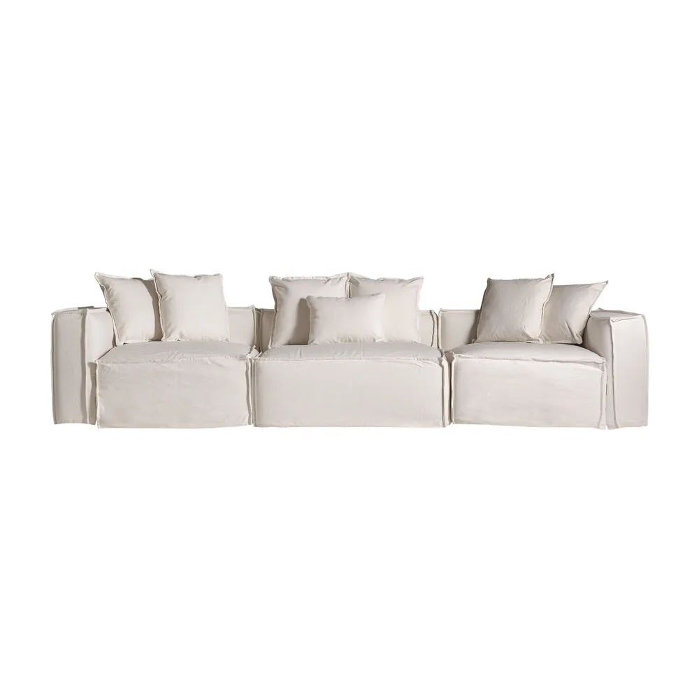 Módulo sofá central virolle de estilo art deco fabricado en lino en color blanco con acabado liso combinado con algodón y espuma. Producto desenfundable.