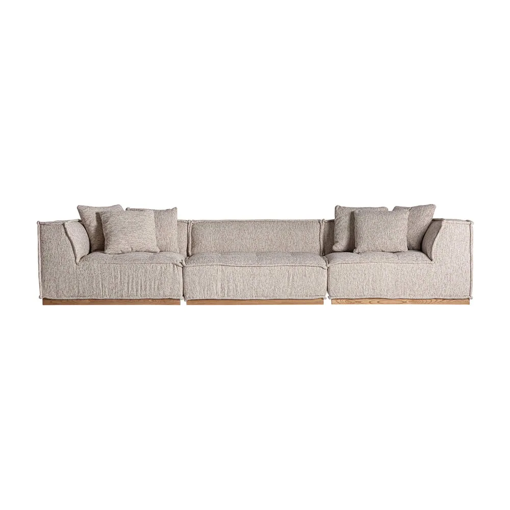 Módulo sofá esquinero Vittel de estilo art deco fabricado en poliéster en color beige combinado con madera de pino en color marrón claro con acabado natural. Producto desenfundable. Compatible con: 34464.