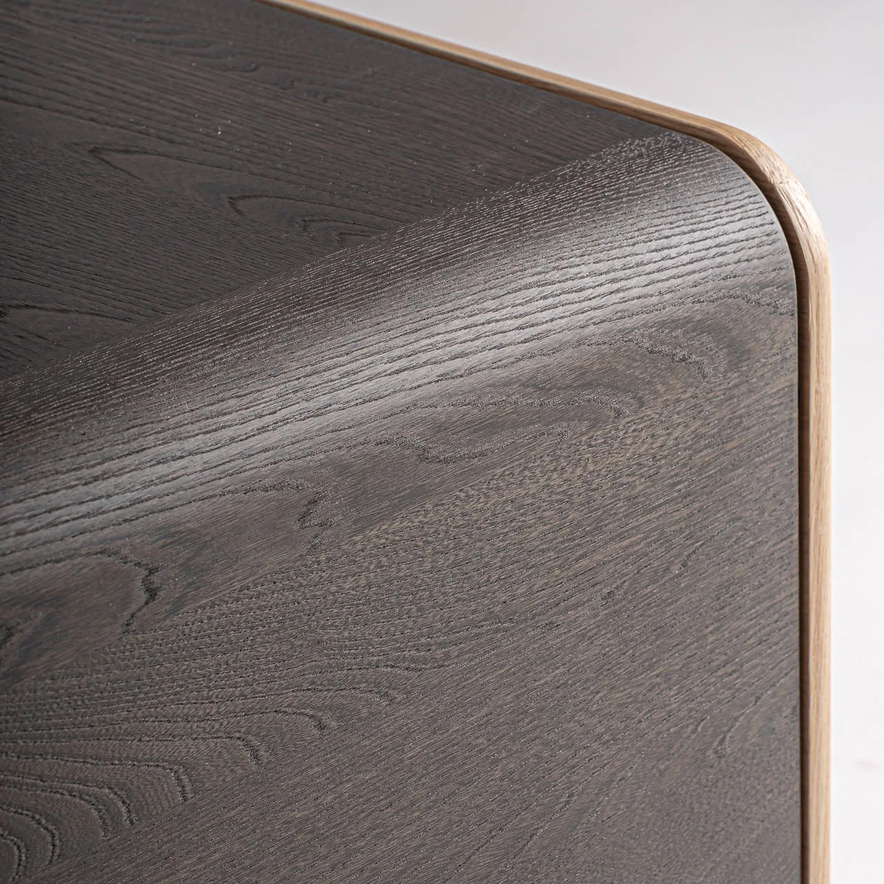Mueble tv Laneo de estilo contemporáneo, fabricado en madera dm en color marrón claro, combinado con madera contrachapada en color marrón. Producto desmontable.