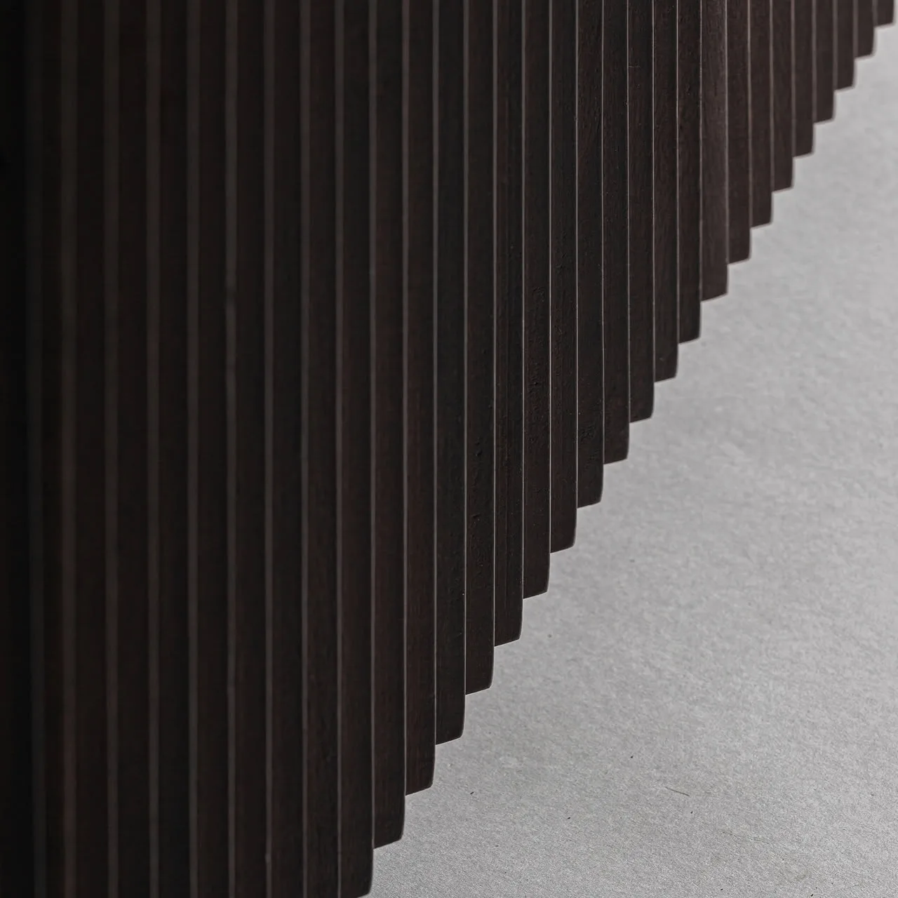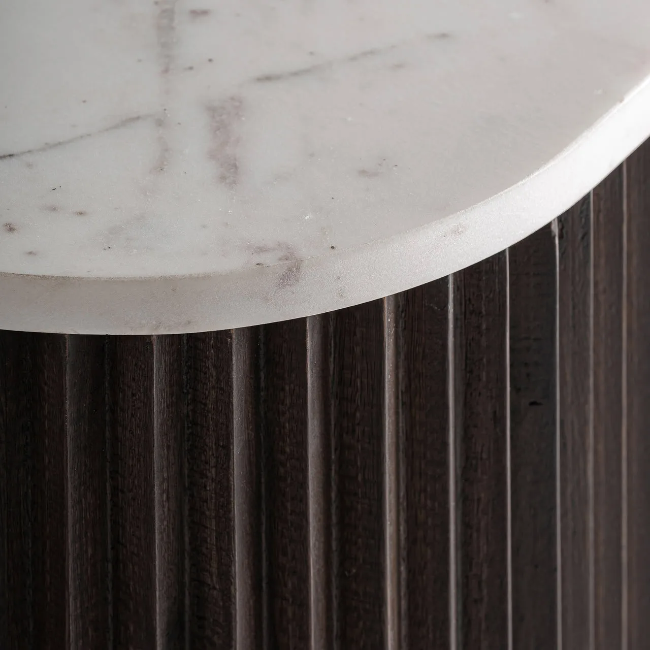 Mueble tv cenves de estilo art deco fabricado en madera de mango en color marrón combinado con mármol en color blanco.