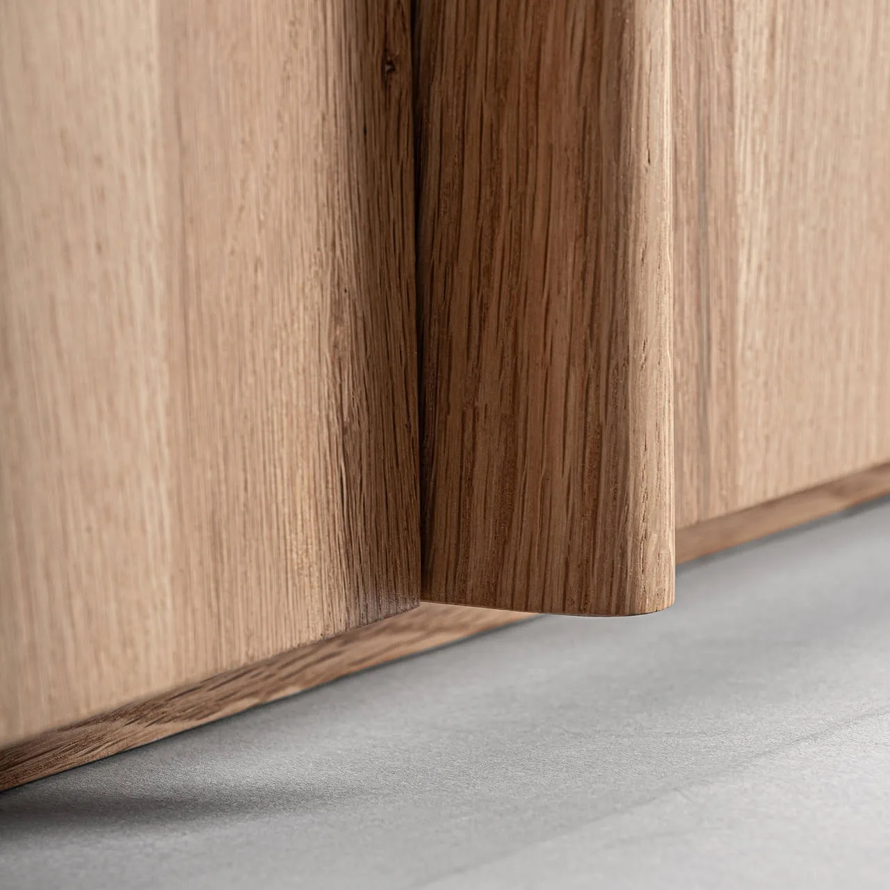 Mueble tv madera roble y mármol Nara de estilo contemporáneo fabricado en madera roble en color marrón claro combinado con mármol en color negro.