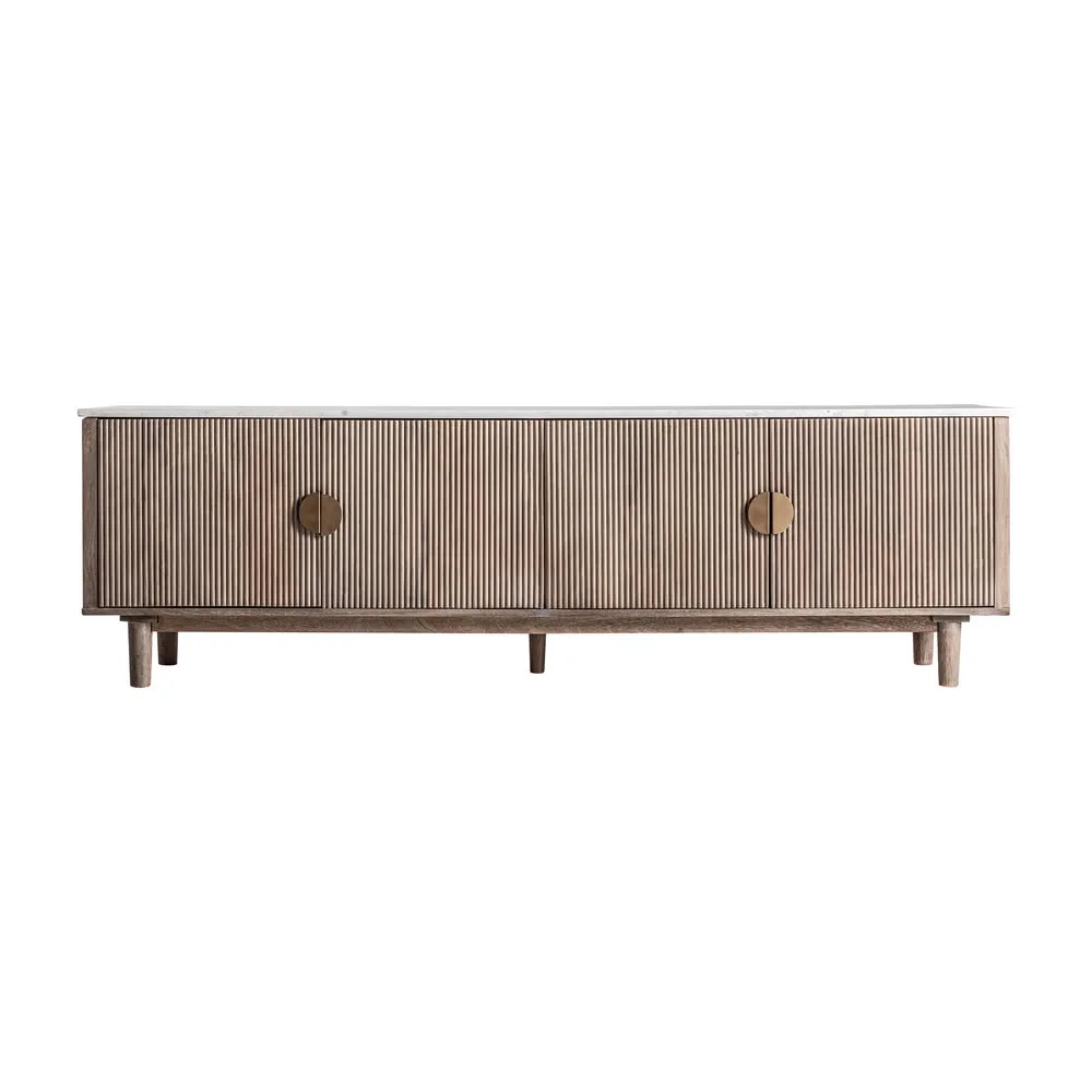 El Mueble TV Zerf de Vical Home combina la calidez de la madera de mango con la elegancia del mármol blanco. Con fabricación artesanal y su diseño lineal y su estructura aportan equilibrio visual y funcionalidad. Una pieza que transforma el salón con sobriedad y carácter. Dimensiones: Ancho: 200cm , Fondo: 45cm , Alto: 60cm