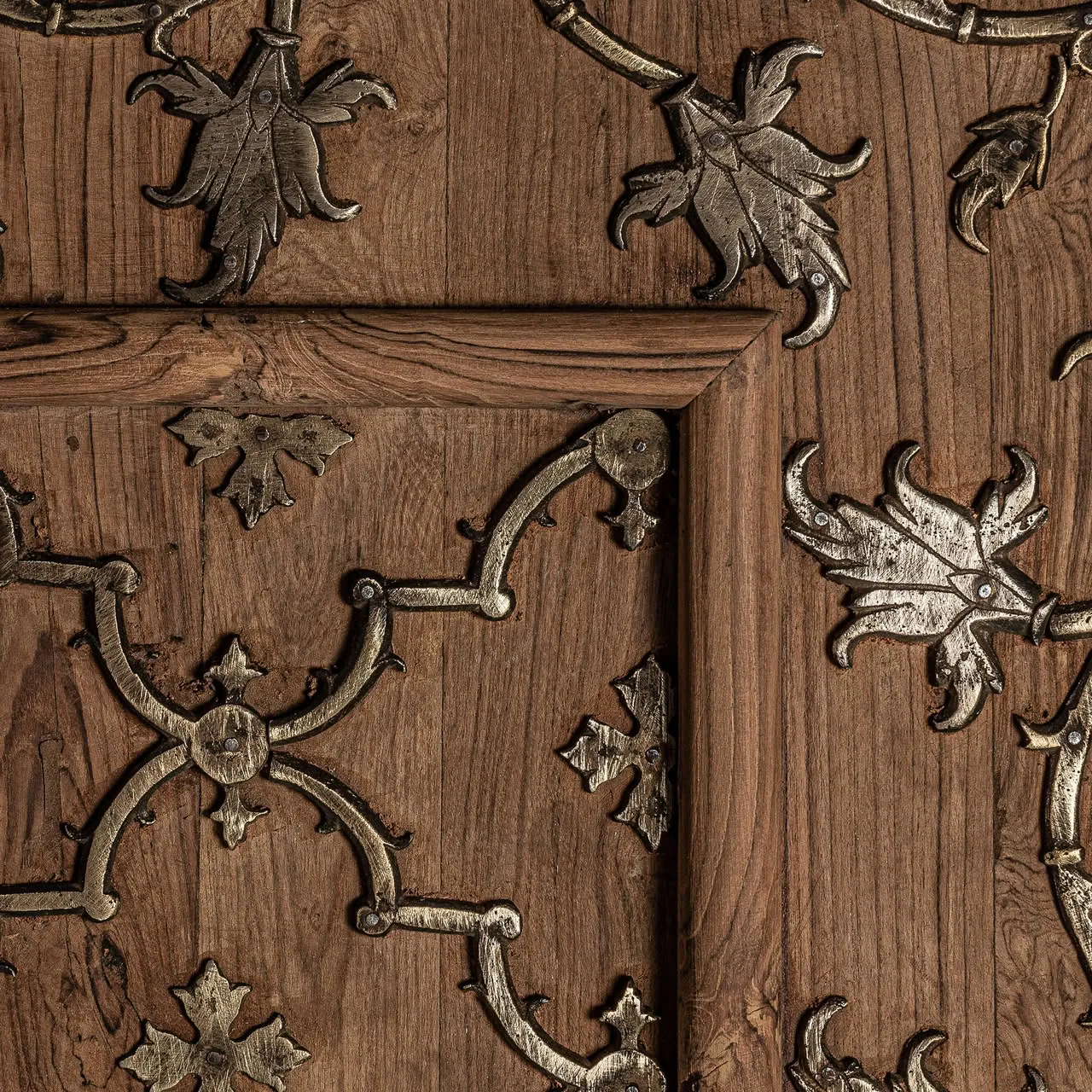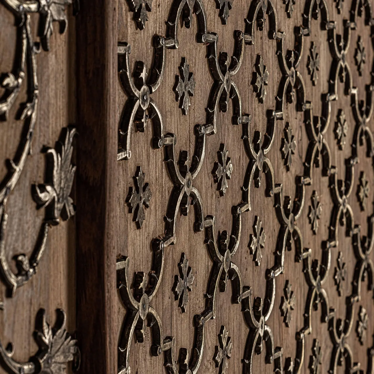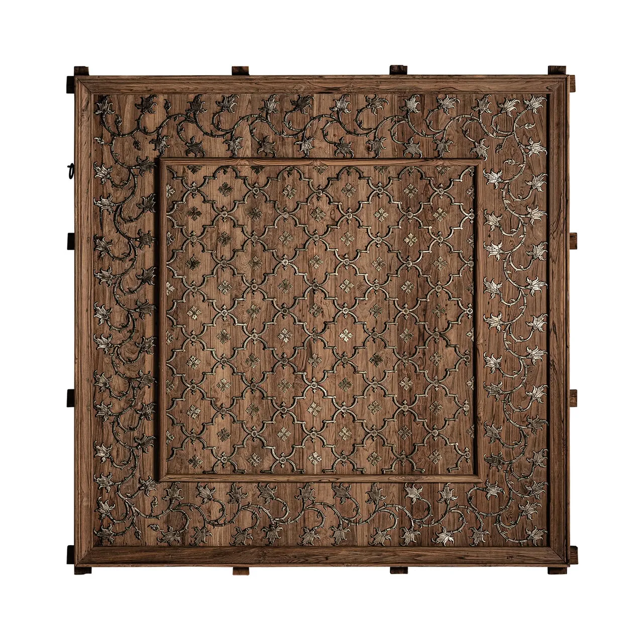 Panel decorativo de estilo étnico, fabricado en madera de mango en color marrón con acabado envejecido.