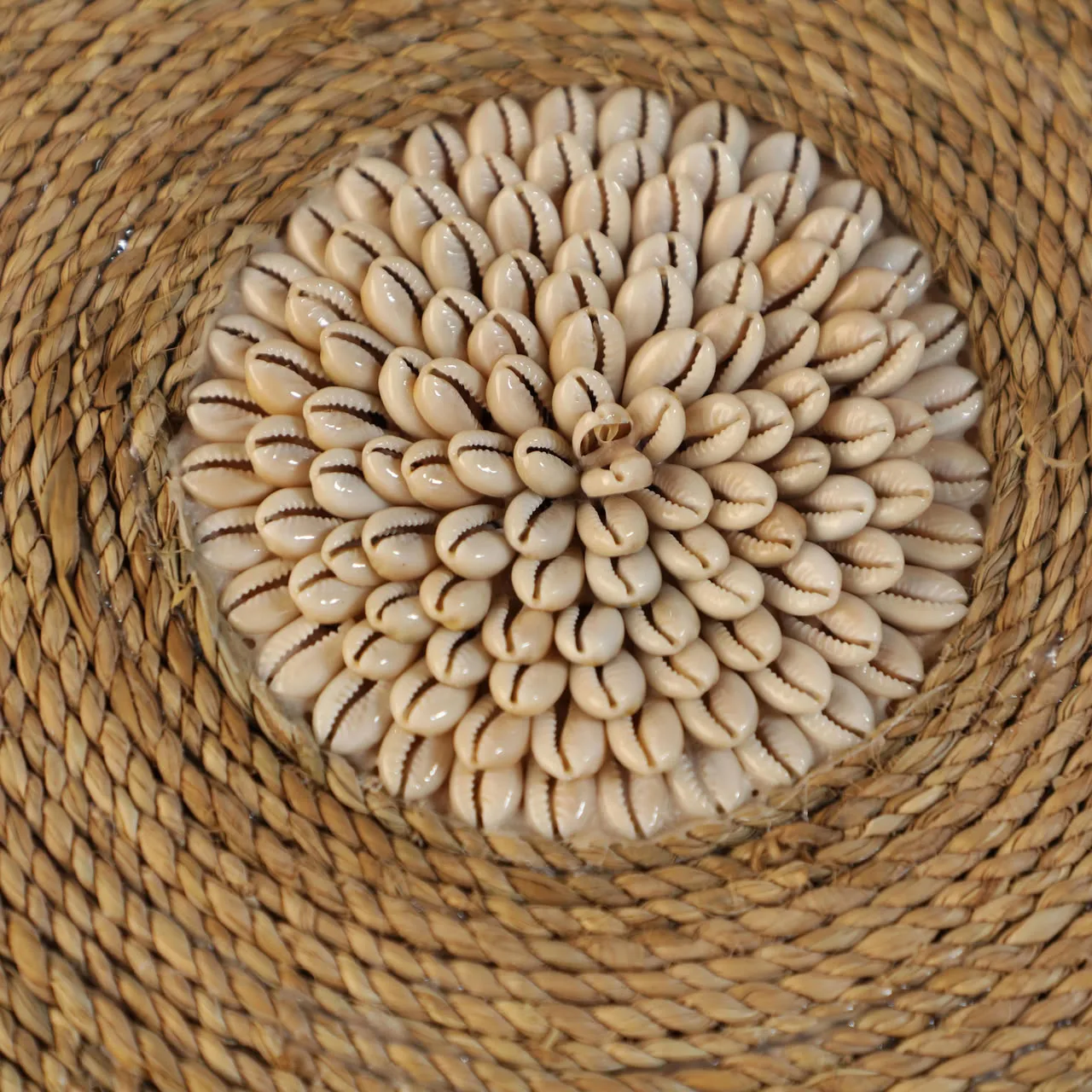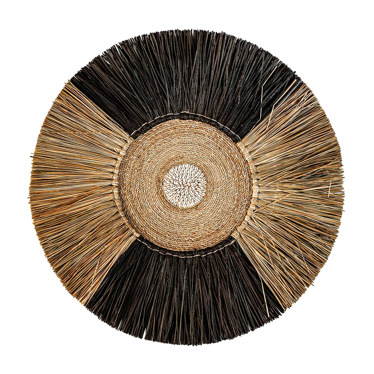 Panel decorativo de estilo boho, fabricado en rafia en color negro en color natural.