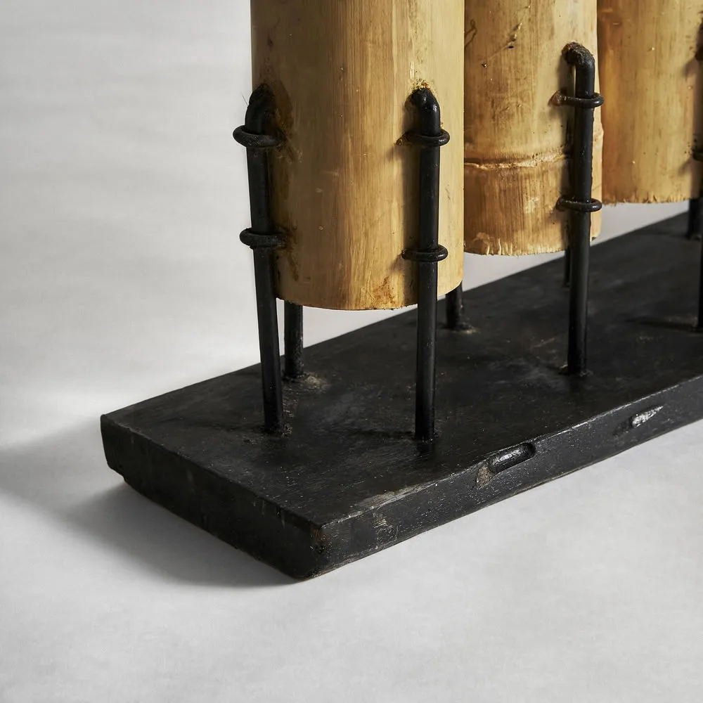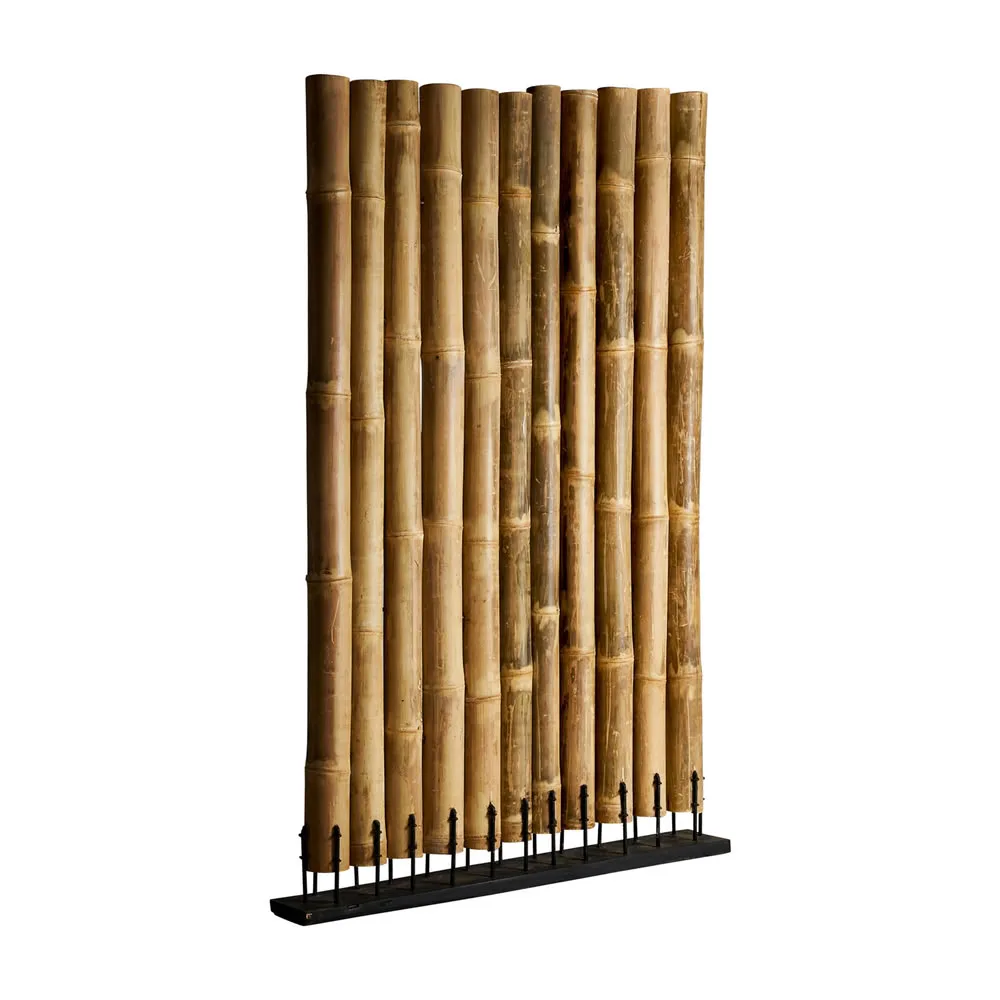 El parabán Kaiuran es una pieza de inspiración étnica que combina la ligereza visual del bambú con la firmeza del hierro, creando un equilibrio natural y cálido. Su acabado marrón natural y su diseño artesanal lo convierten en una solución decorativa ideal para separar ambientes con estilo, aportando textura, carácter y sensación de calma al espacio.