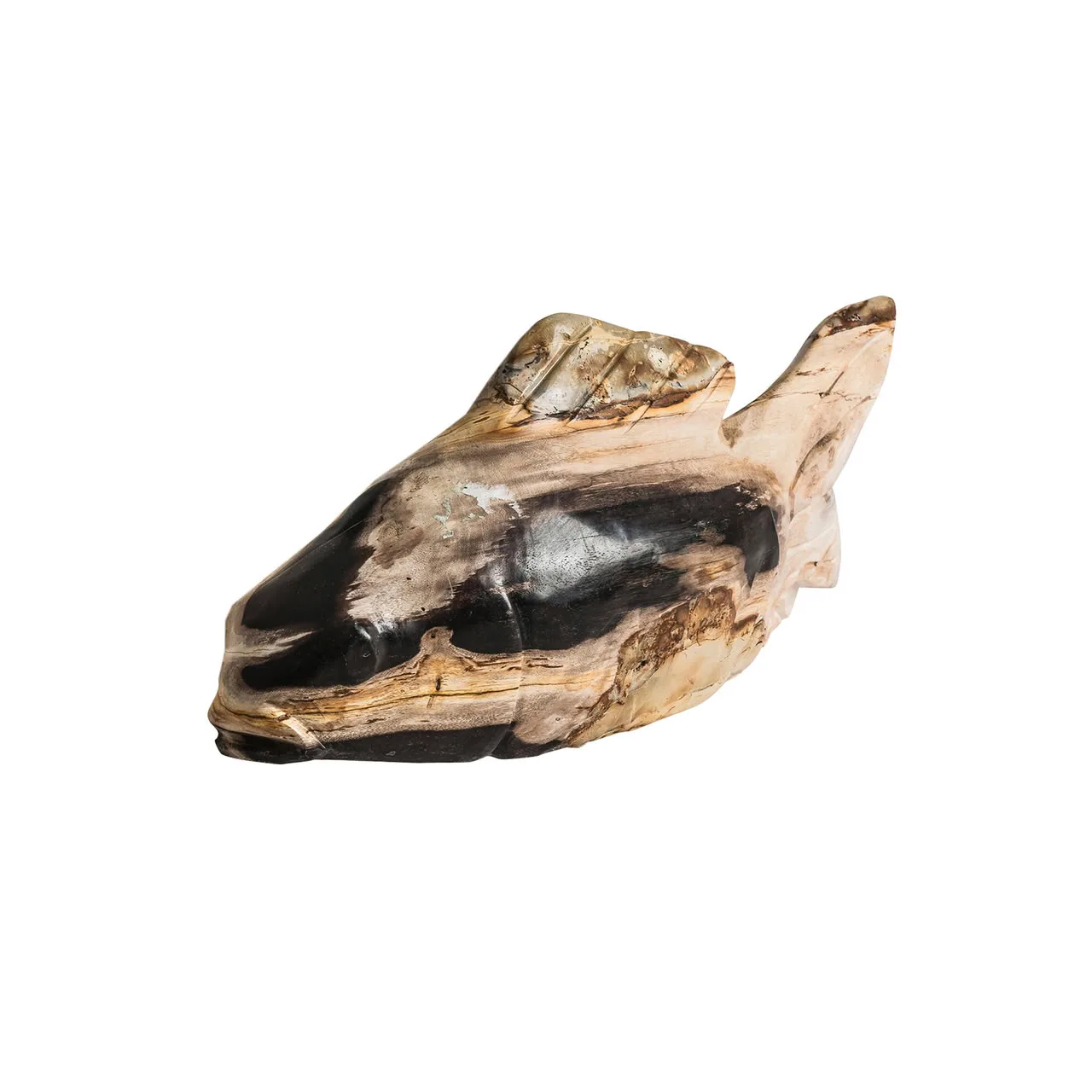 Figura decorativa de pez de madera fabricado artesanalmente de estilo nórdico, fabricado en madera petrificada en color tonos en marrón con acabado envejecido.