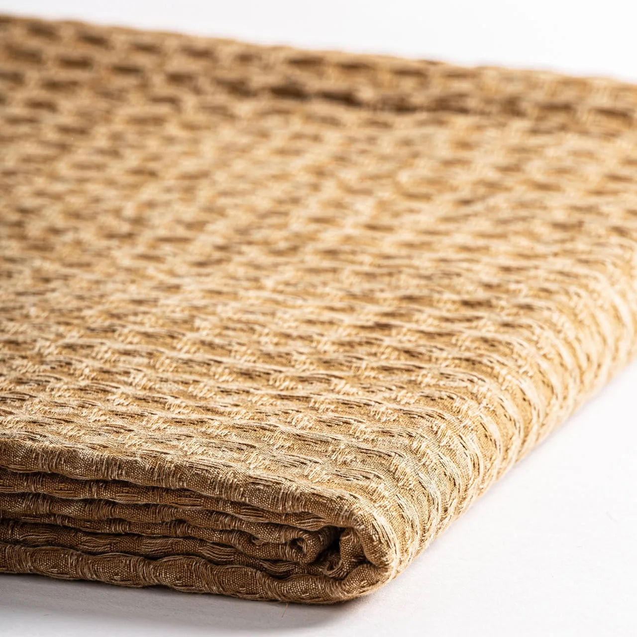 Plaid de algodón en tono camel Seranhe de Kodu, una pieza textil que destaca por su elegancia discreta y su suavidad. Su acabado cálido y sus proporciones —125 x 160 cm— lo convierten en el complemento perfecto para aportar confort y sofisticación a sofás, camas o rincones acogedores.