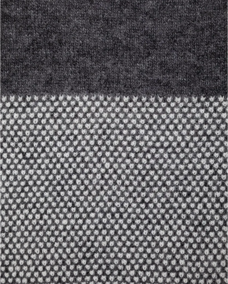 Su diseño bicolor en gris antracita con punteado blanco crea una estética elegante y atemporal, perfecta para interiores contemporáneos.
