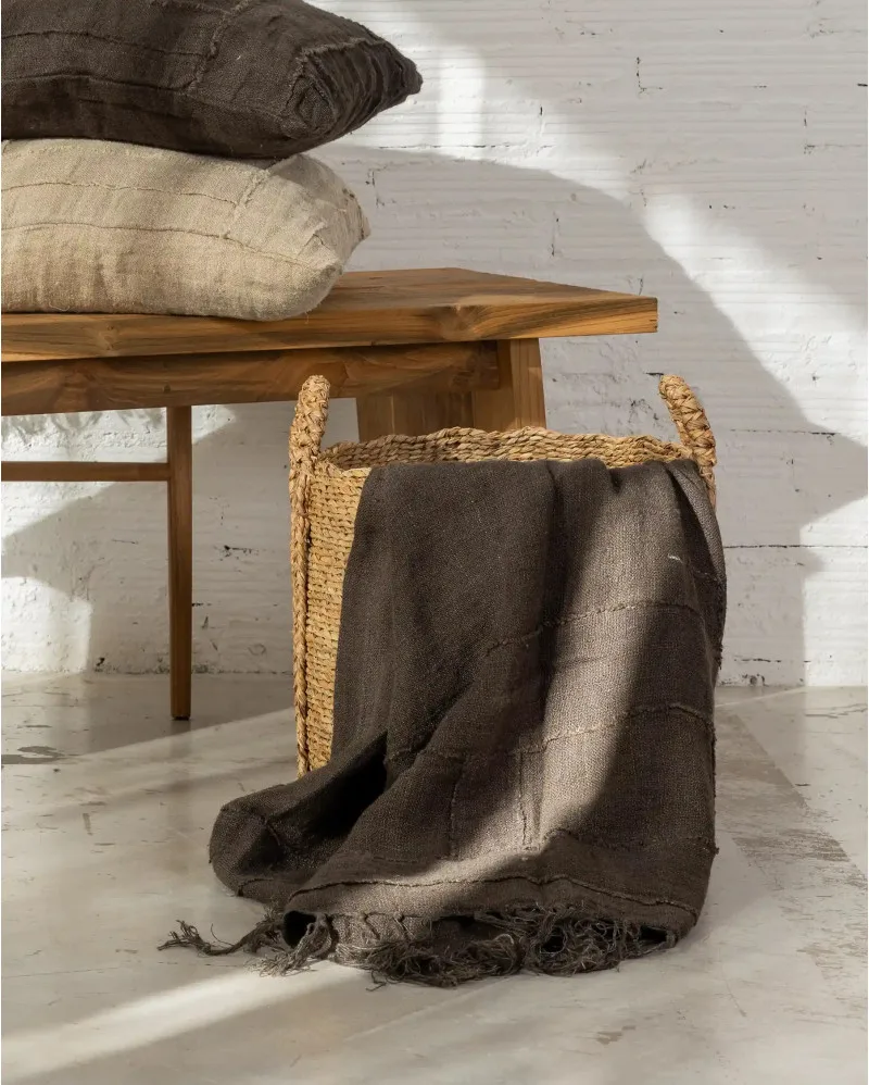 Plaid WARORA confeccionado artesanalmente en 100% lino lavado a la piedra, con unas dimensiones de 170 × 130 cm, ideal para aportar textura y profundidad a sofás, butacas o camas.