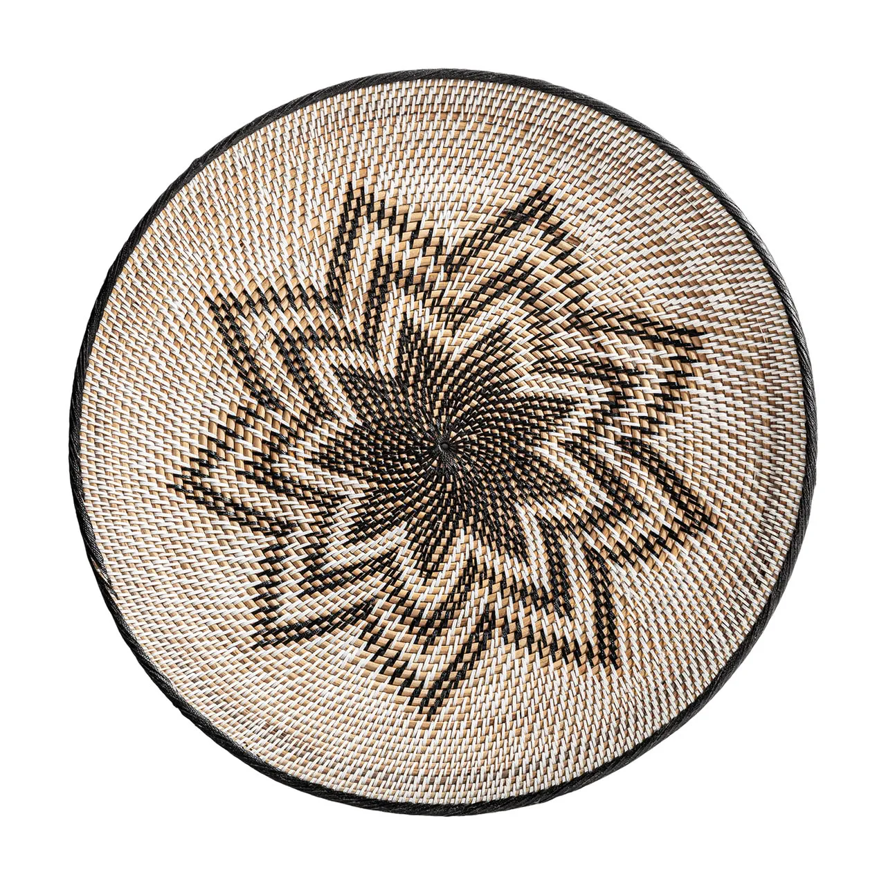 Plato decorativo de estilo boho, fabricado en ratán en color beige.