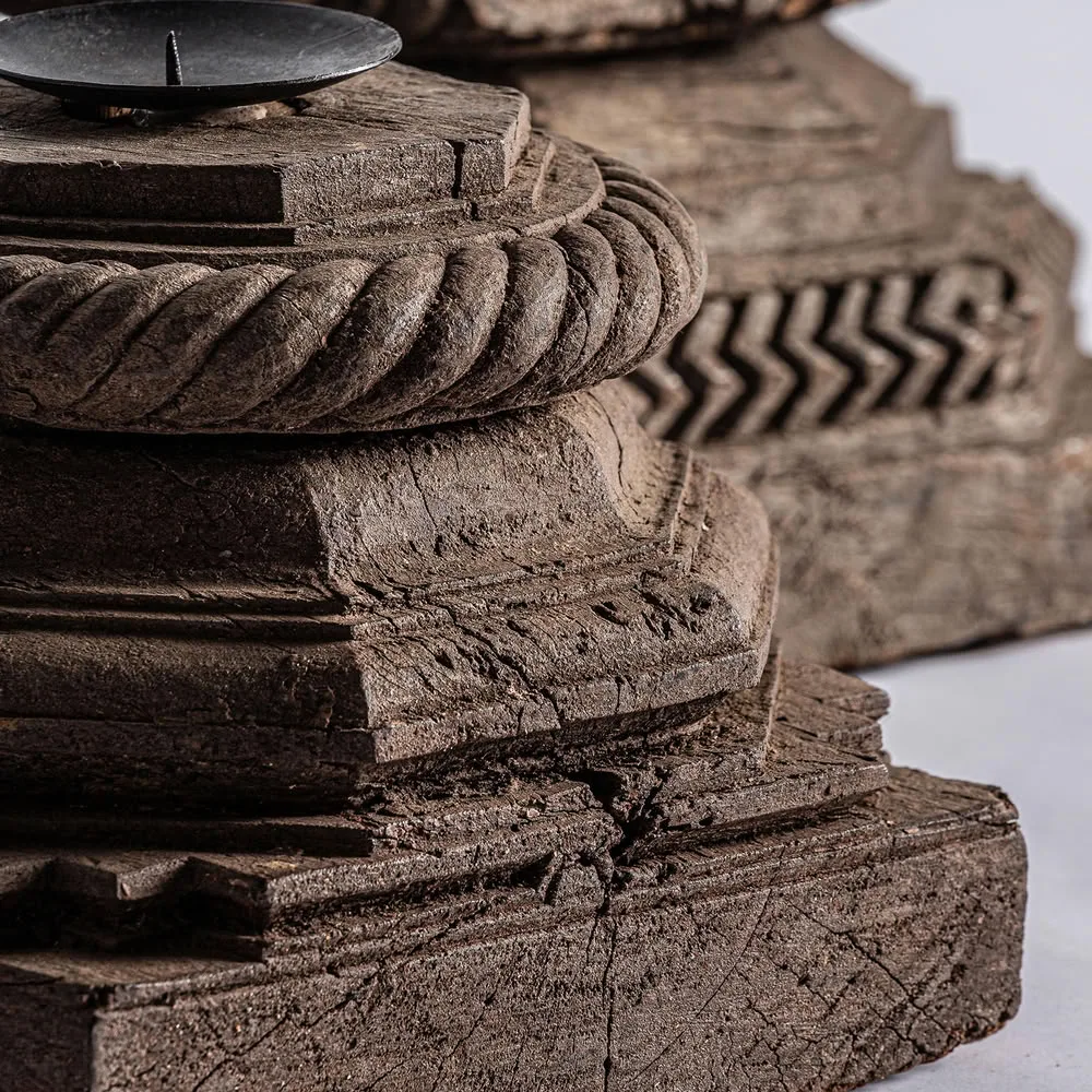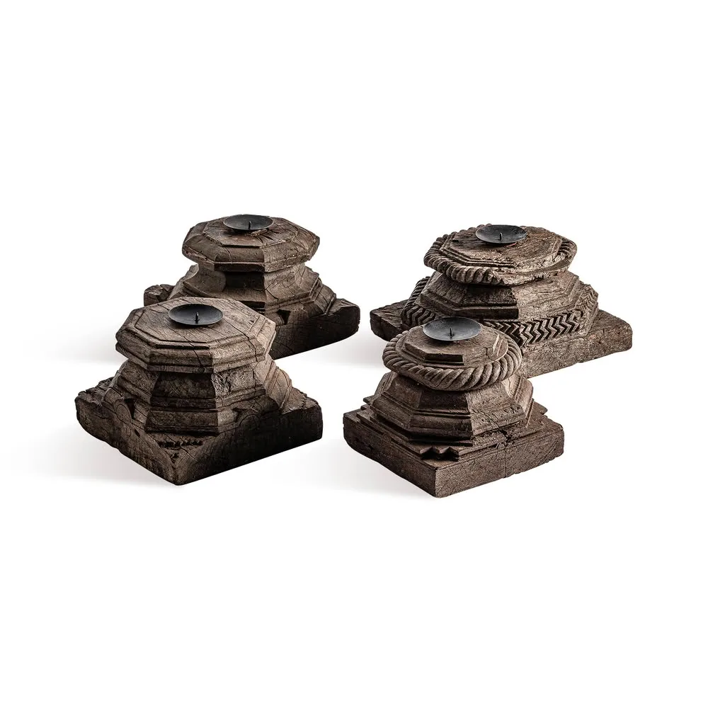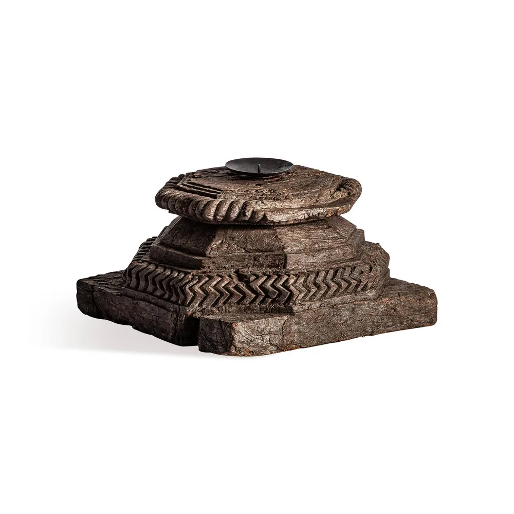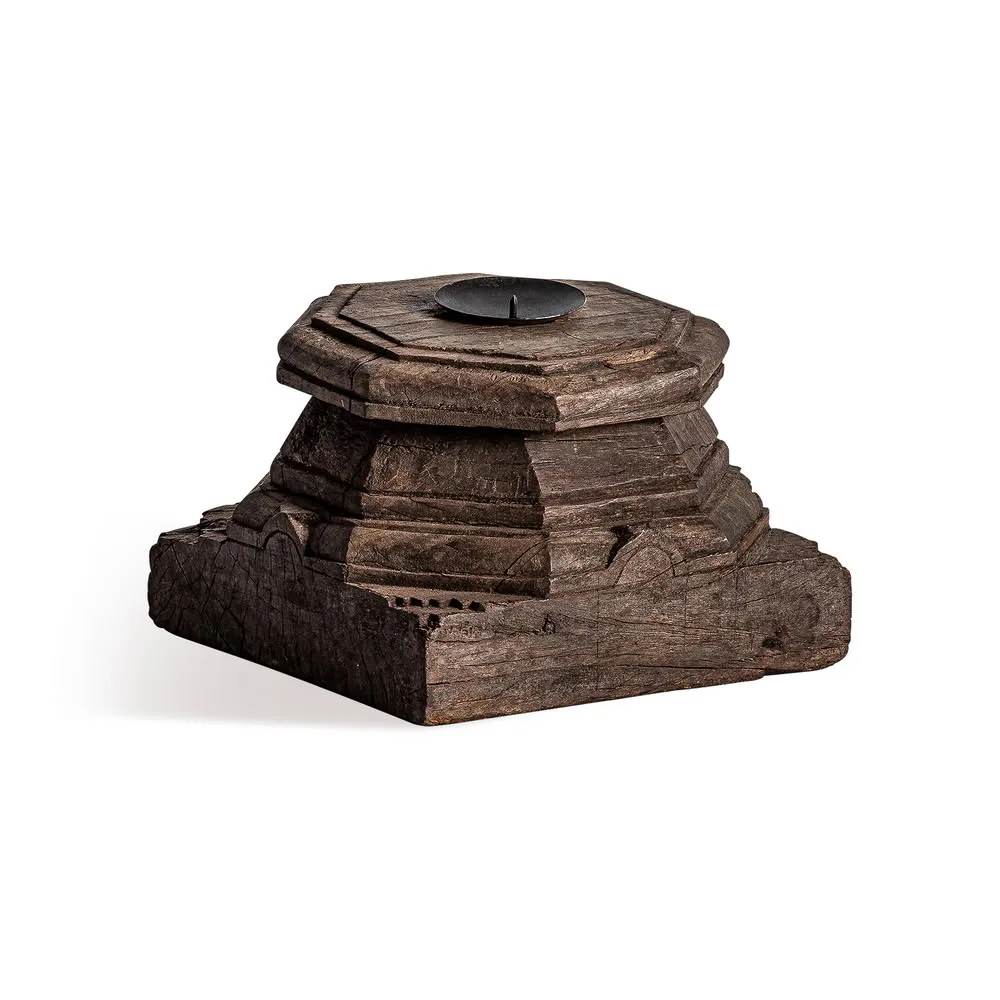 Portavela Wajir de estilo étnico fabricado en madera de mango reciclada en color marrón con acabado envejecido.