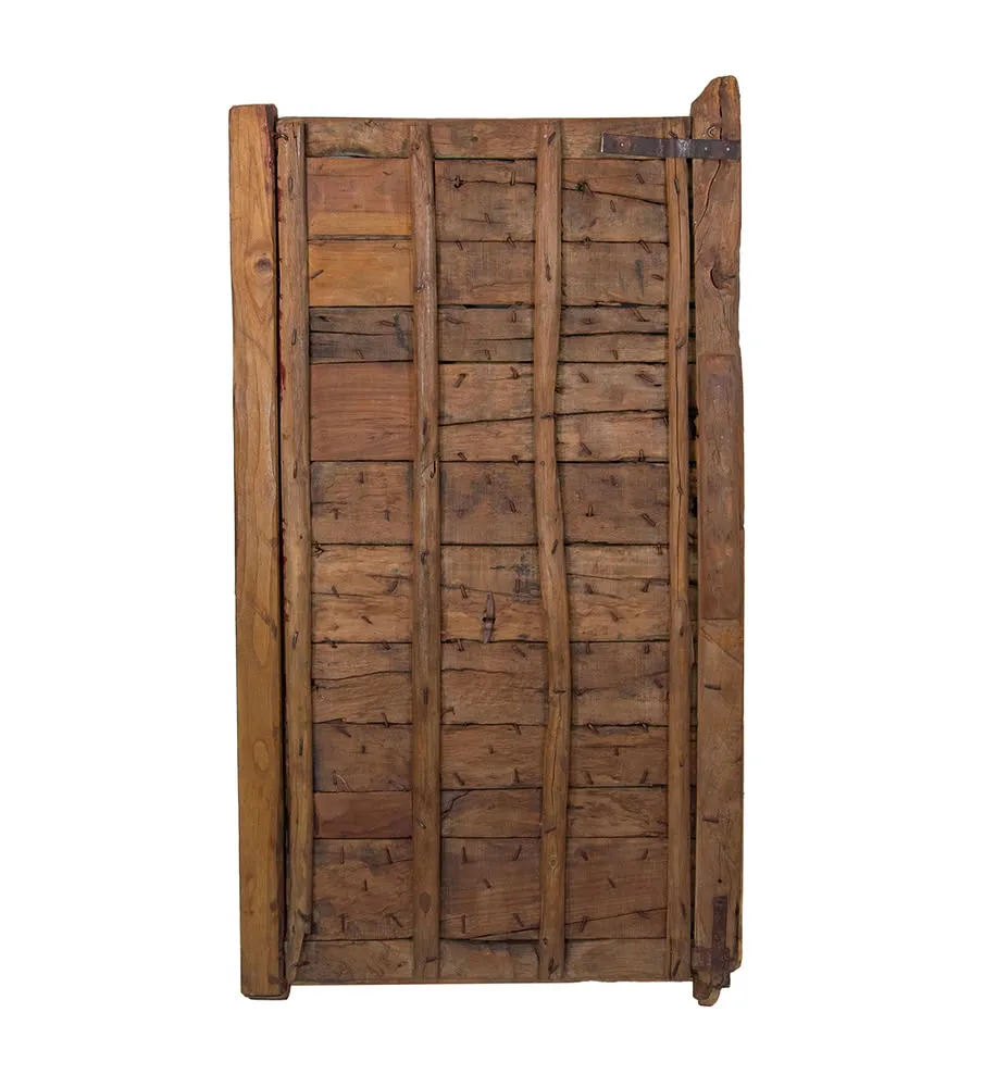 La Puerta Bahamas de teca antigua con cruces pequeña 76 x 137 cm es una pieza decorativa única, elaborada a partir de madera de teca antigua reutilizada. Cada unidad presenta cruces talladas y detalles con carácter propio, fruto de su origen artesanal y del paso del tiempo, lo que hace que no existan dos piezas iguales. Ideal como elemento decorativo mural o como pieza protagonista en interiores de estilo étnico, natural o mediterráneo, aporta autenticidad y personalidad al espacio.