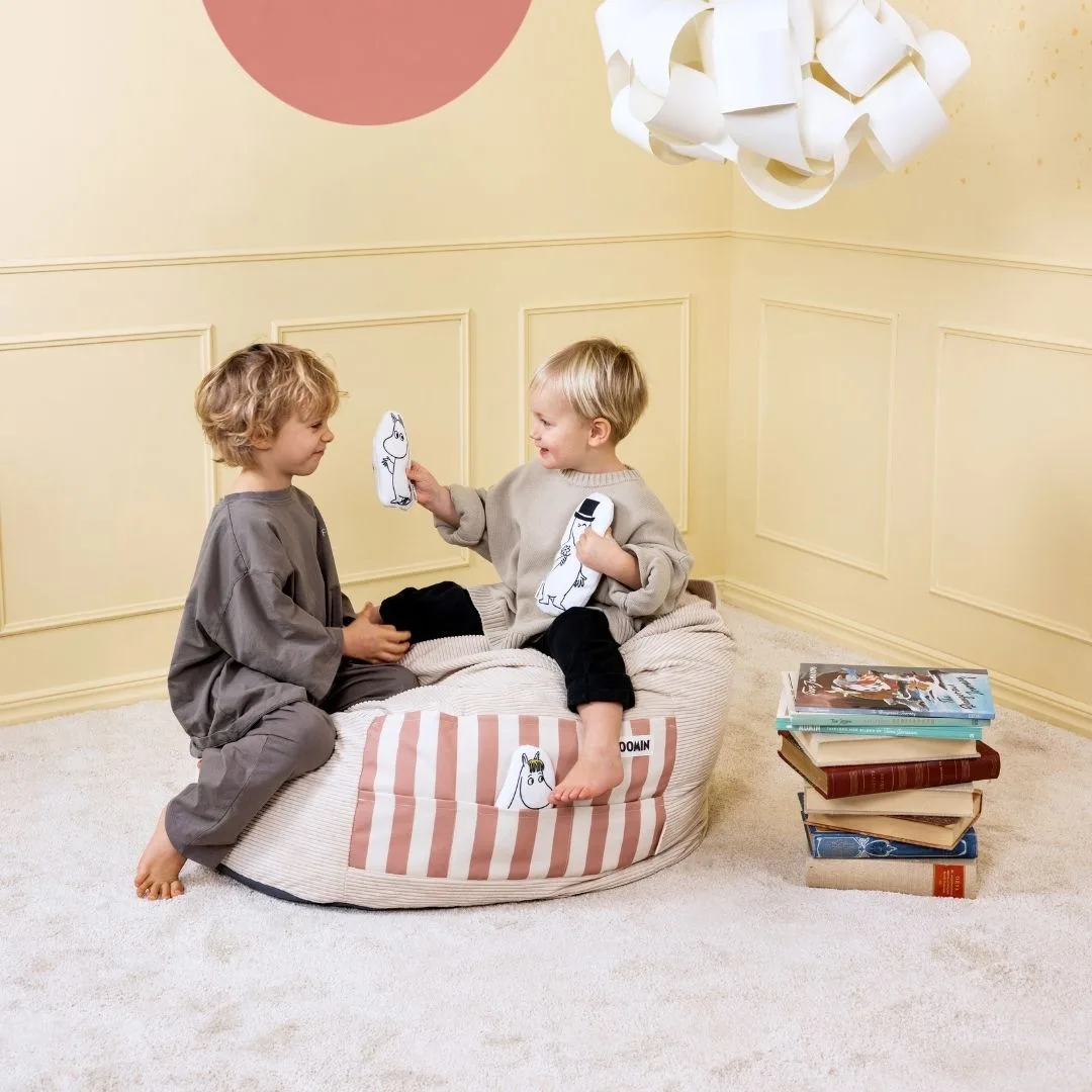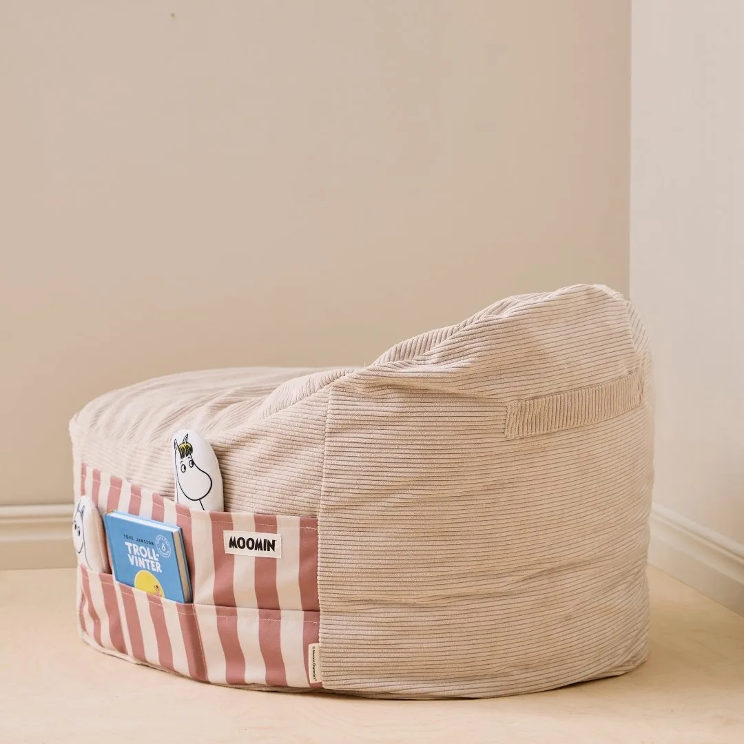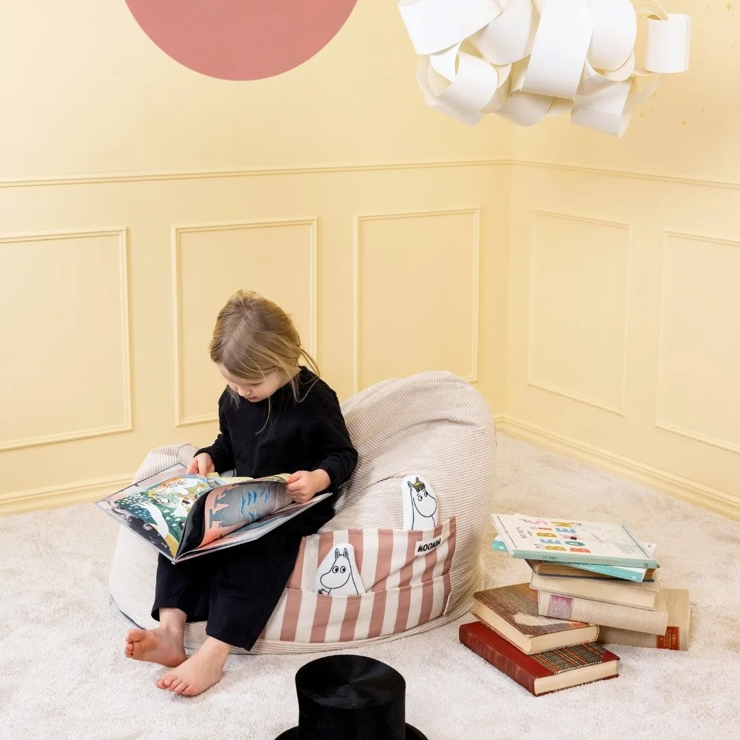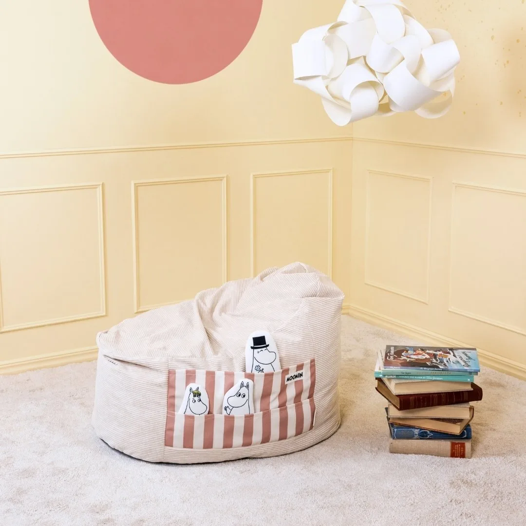 El puff para niños Moomin es un rincón acogedor diseñado para ofrecer a los más pequeños un espacio propio donde relajarse y descansar. Inspirado en Mymble, la hermana mayor de Little My, este puff refleja la importancia de tener un lugar tranquilo para leer, soñar o simplemente disfrutar de un momento de calma. Su tamaño está pensado para adaptarse perfectamente al cuerpo de los niños, abrazándolos suavemente mientras se acomodan.