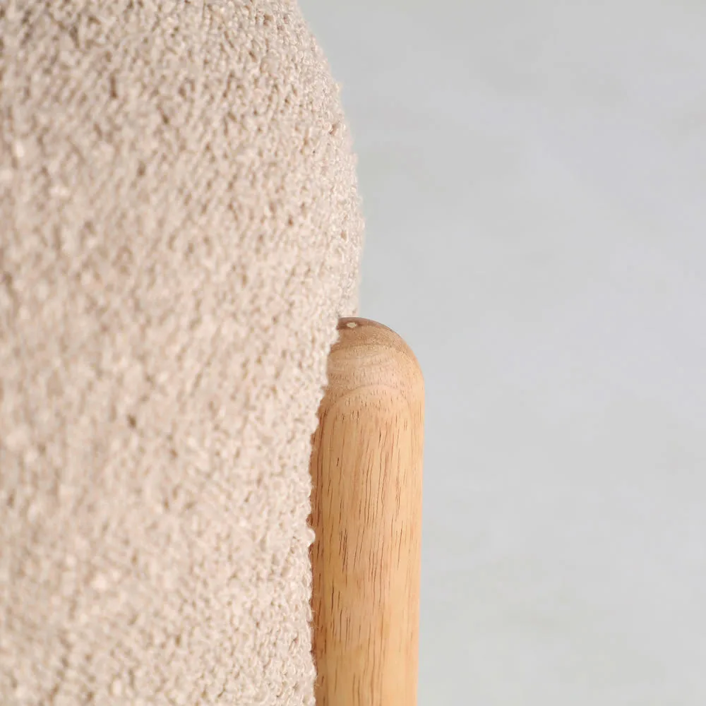 • Composición material: algodón bouclé en color beige, combinado con madera de pino y espuma