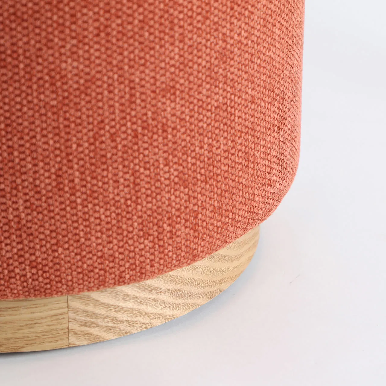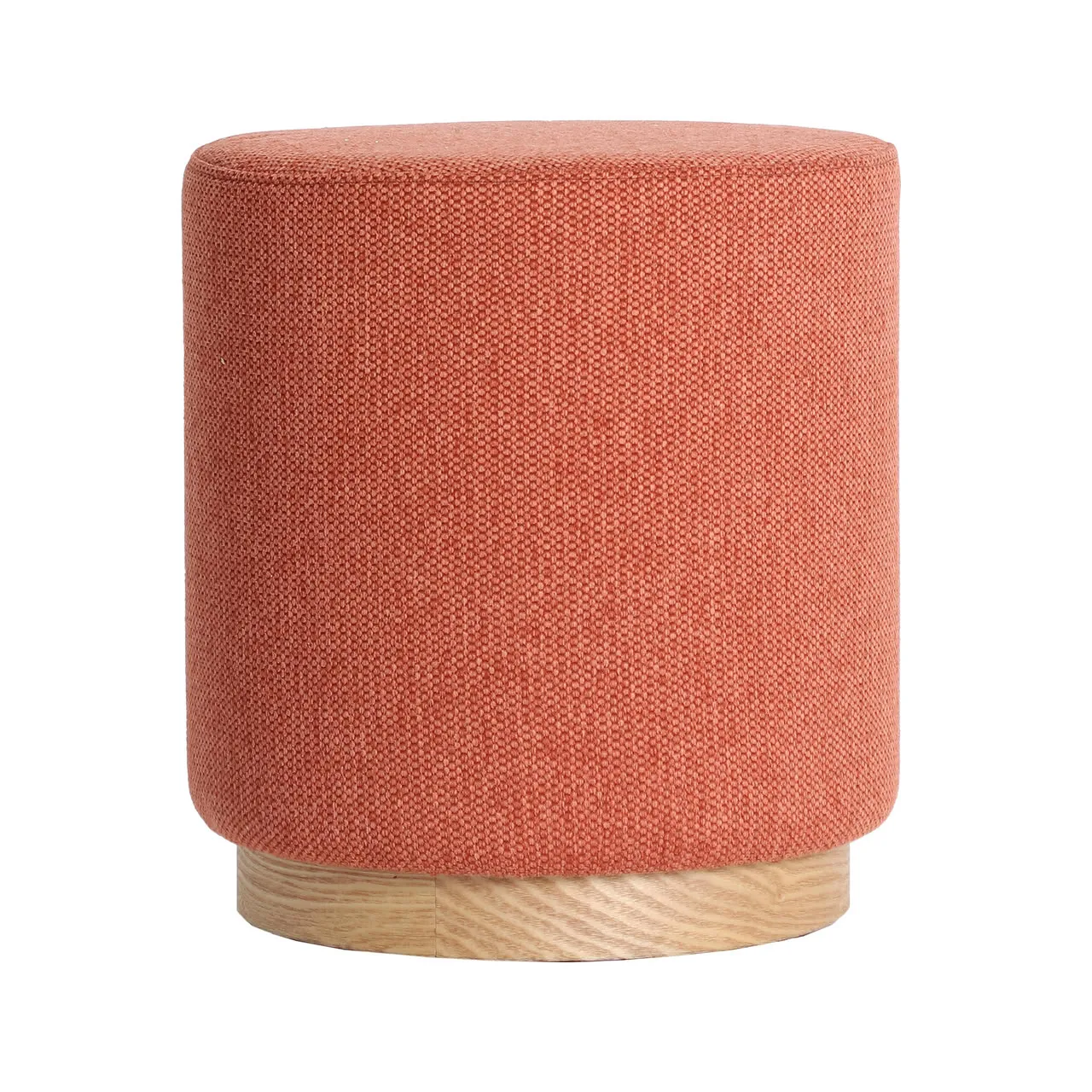 Reposapiés en tono terracota con base de madera de pino en marrón claro, una pieza que aporta calidez y textura al espacio. Su diseño compacto y sus proporciones —41 x 41 x 45 cm— lo convierten en un complemento versátil, ideal para añadir confort y un toque de color en ambientes contemporáneos.