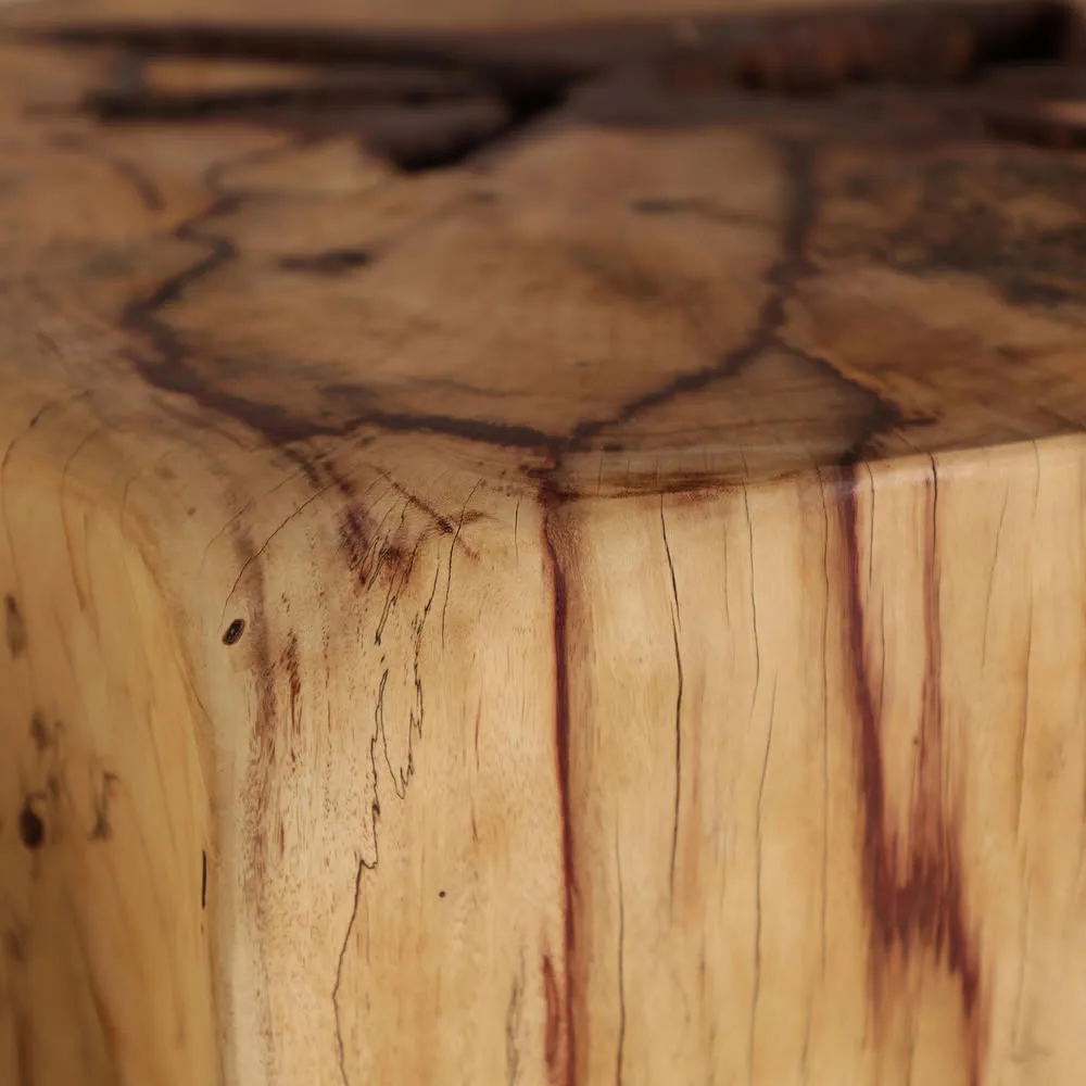 Reposapiés Dharm de estilo étnico fabricado en madera de tamarindo en color marrón.