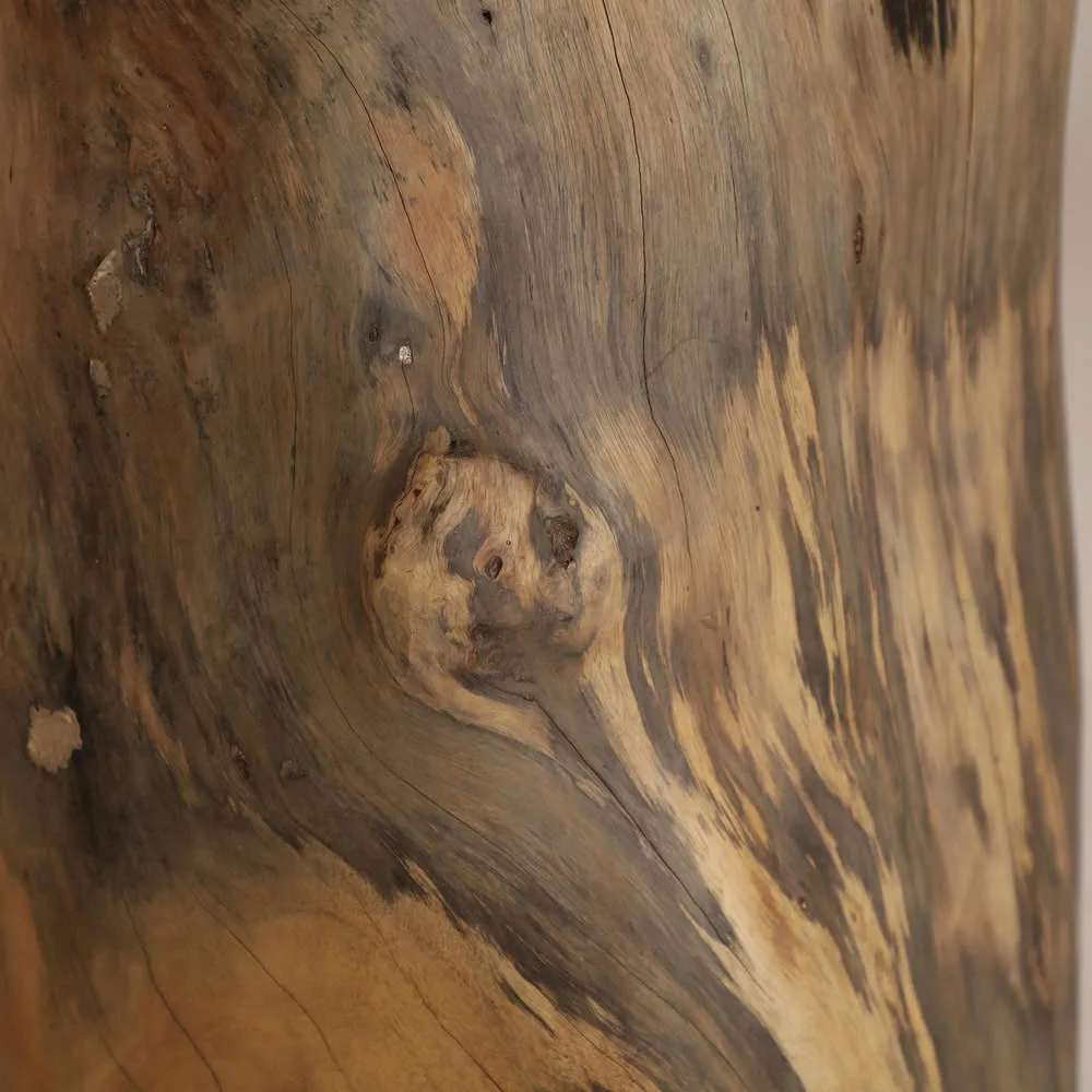 Reposapiés Dharm de estilo étnico fabricado en madera de tamarindo en color marrón.