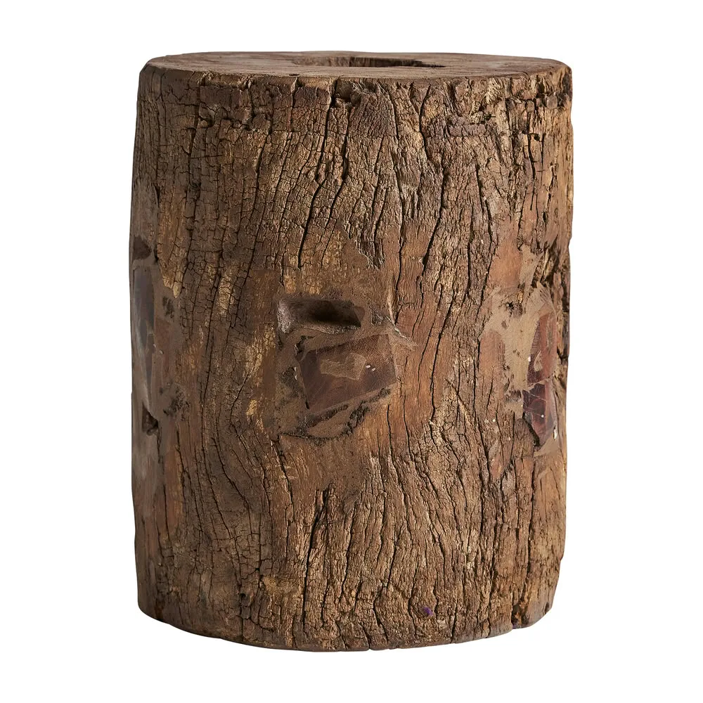 Reposapiés Kraj de estilo étnico fabricado en madera de mango en color marrón con acabado envejecido.