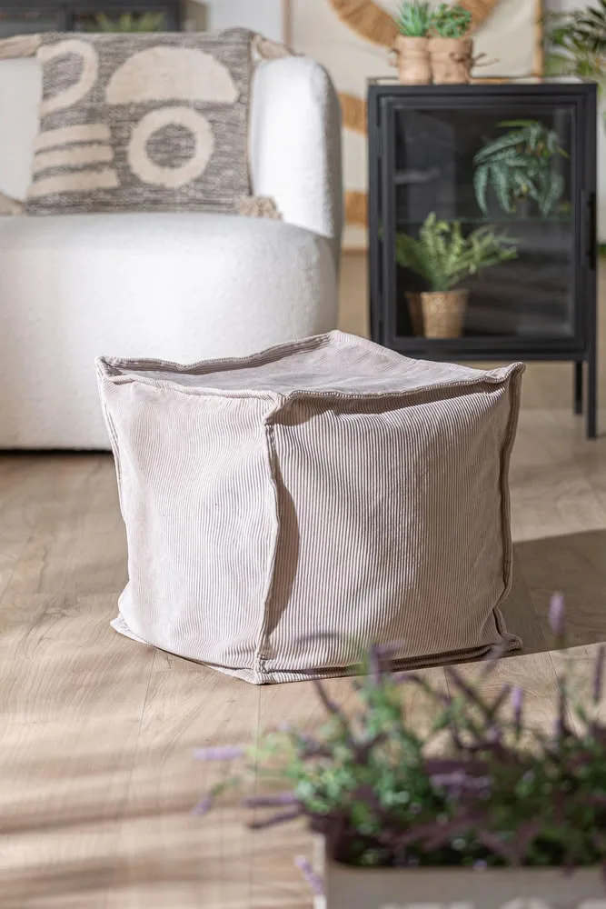 El reposapiés Seia de Kodu, de 45x45x40cm y tapizado en tela de pana color gris, es un complemento perfecto para añadir un toque de estilo y confort a cualquier espacio. Su diseño compacto y su acabado en pana lo convierten en un elemento decorativo funcional y elegante. Ofrece un espacio adicional para relajar los pies y, al mismo tiempo, sirve como un elemento decorativo que complementa y realza cualquier ambiente, reflejando el compromiso de Kodu con la calidad y el diseño innovador.