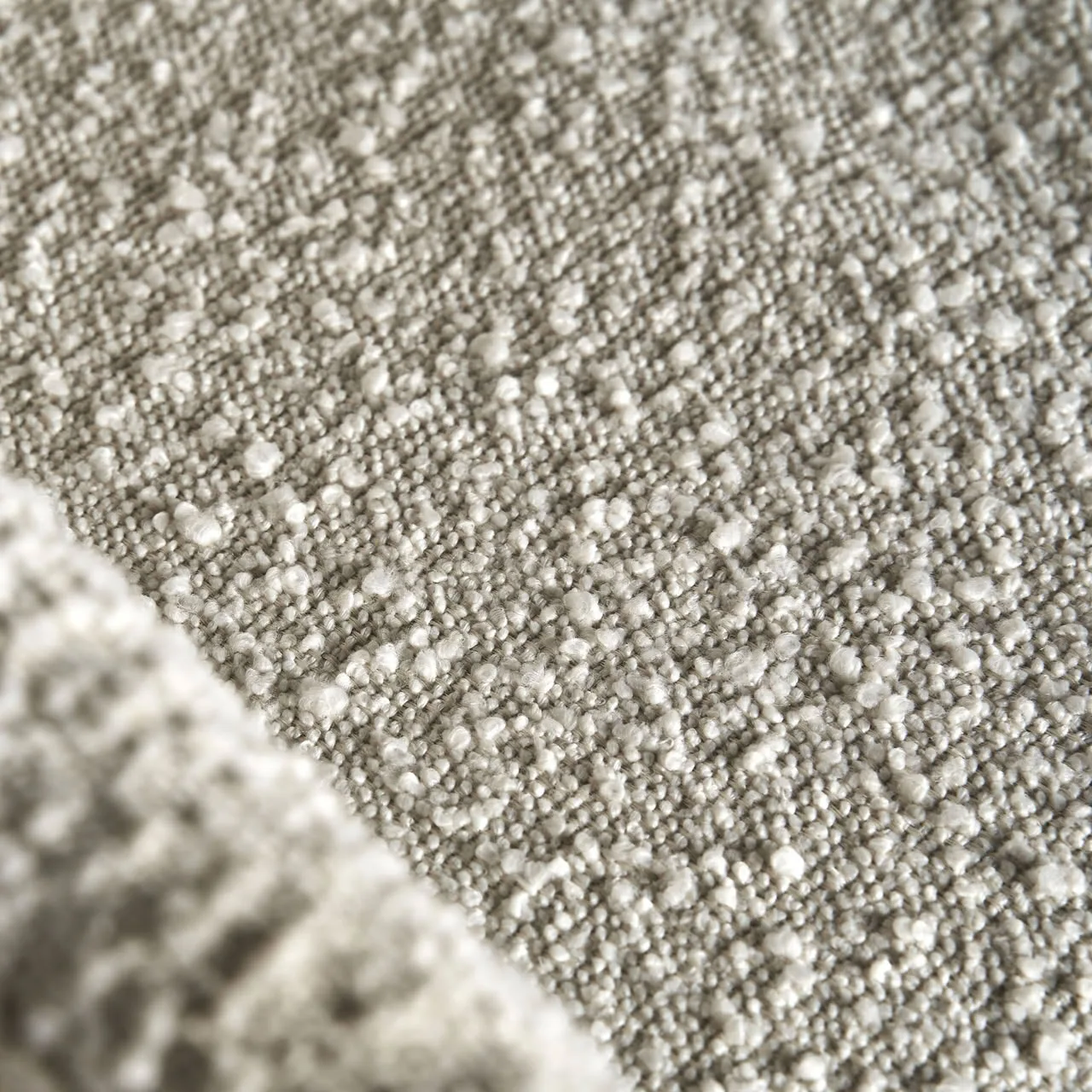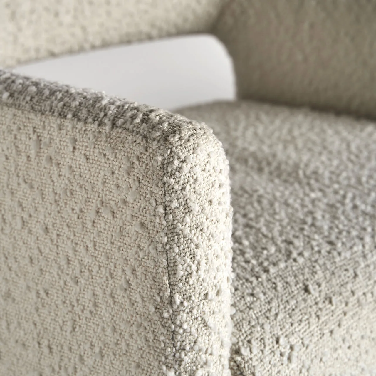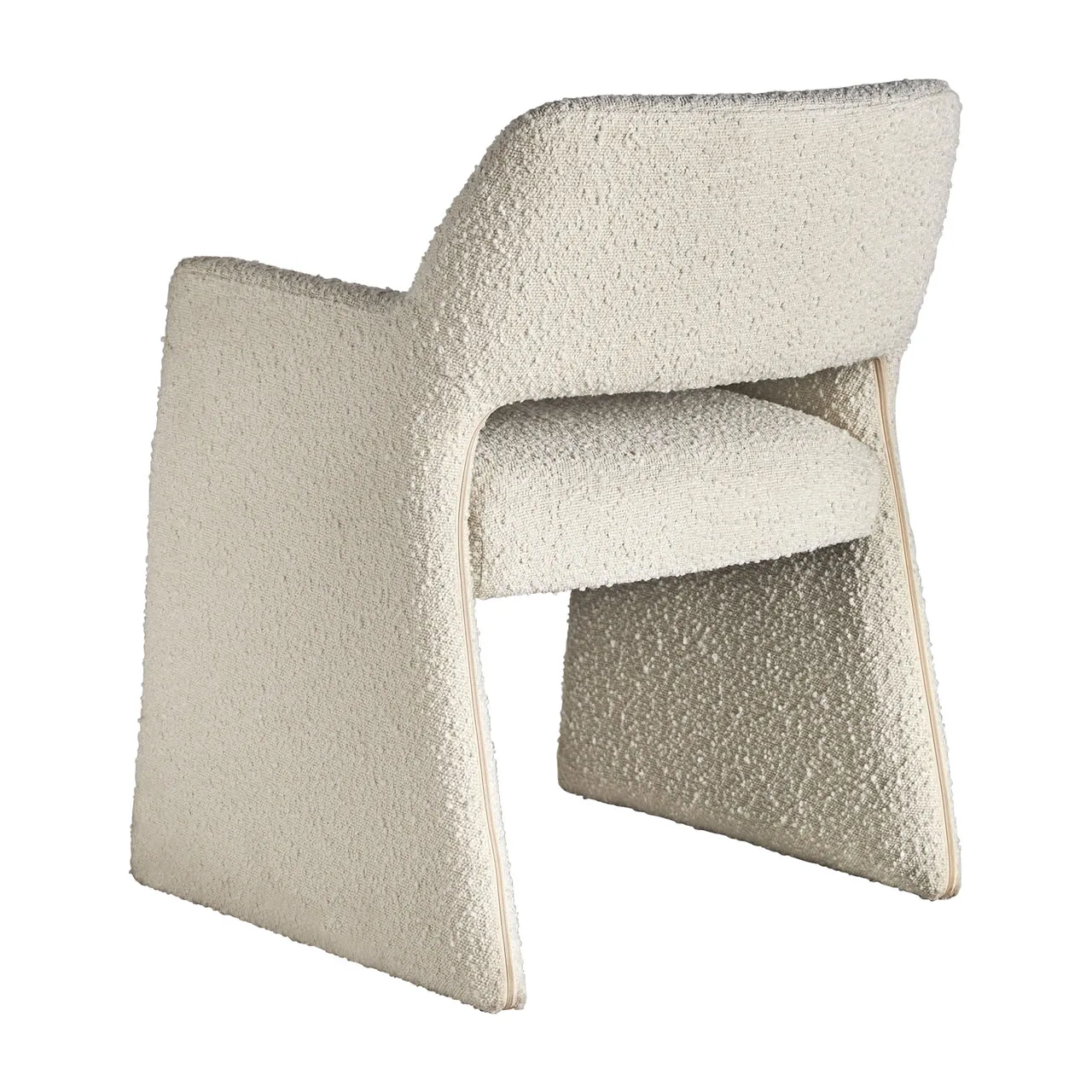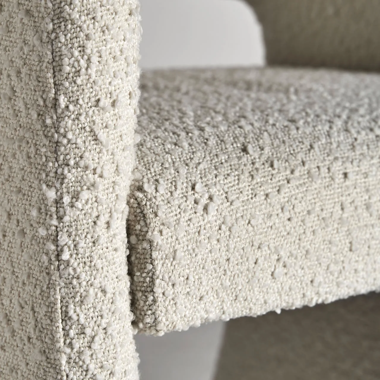 Silla alvra de estilo art deco, fabricado en algodón bouclé en color blanco roto, combinado con espuma y madera dm. Producto desenfundable.