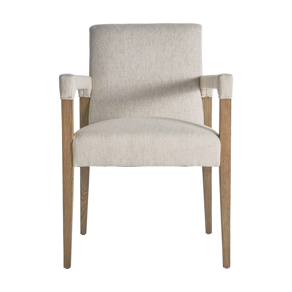 Silla Baena de estilo colonial fabricado en lino en color crema combinado con madera abedul y espuma.